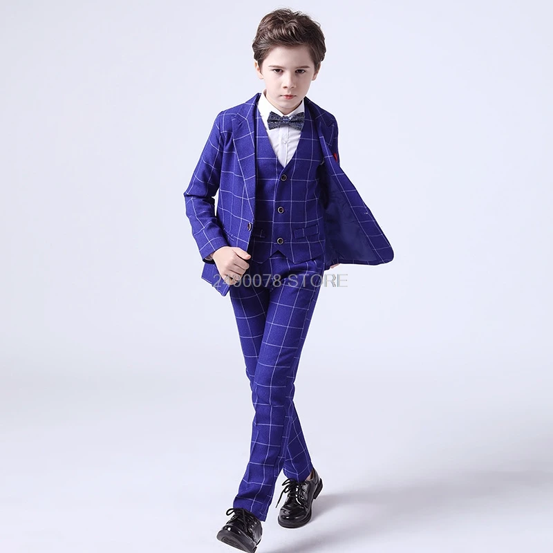Роскошный свадебный костюм с цветочным принтом для мальчиков Детский Клетчатый жакет, жилет и брюки формальное платье с бантом из 4 предметов Детский костюм для выступлений