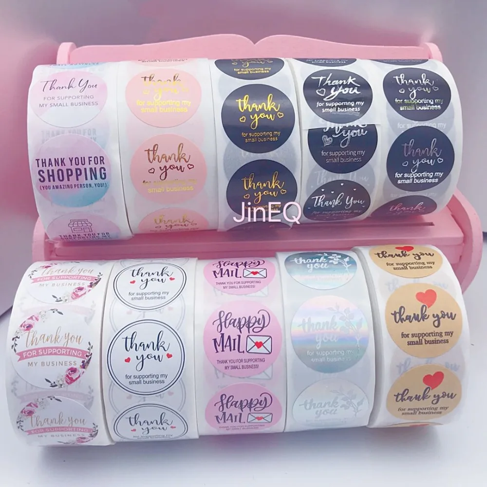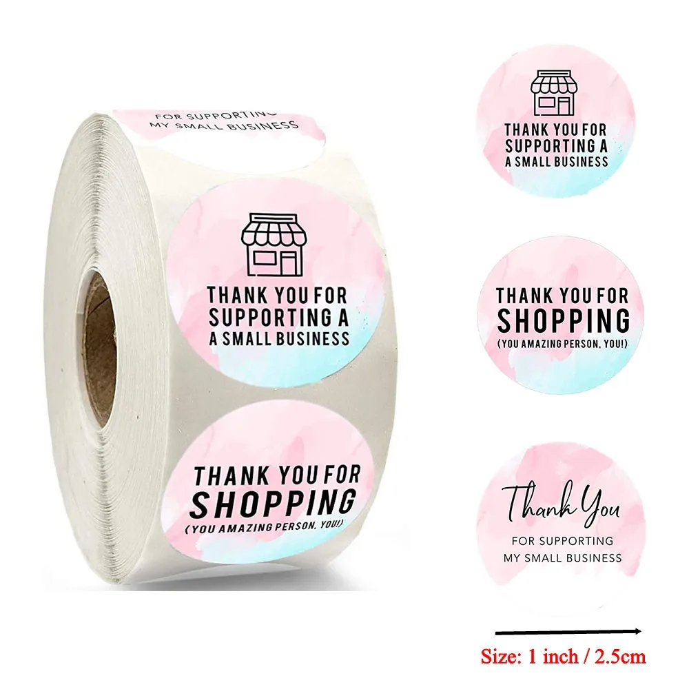 Наклейки в розовом цвете с надписью спасибо за поддержку бизнеса, 500 шт., 1 дюйм, круглая бумага, печать ручной работы, для подарочной упаковки, стикер для канцелярских товаров наклеек