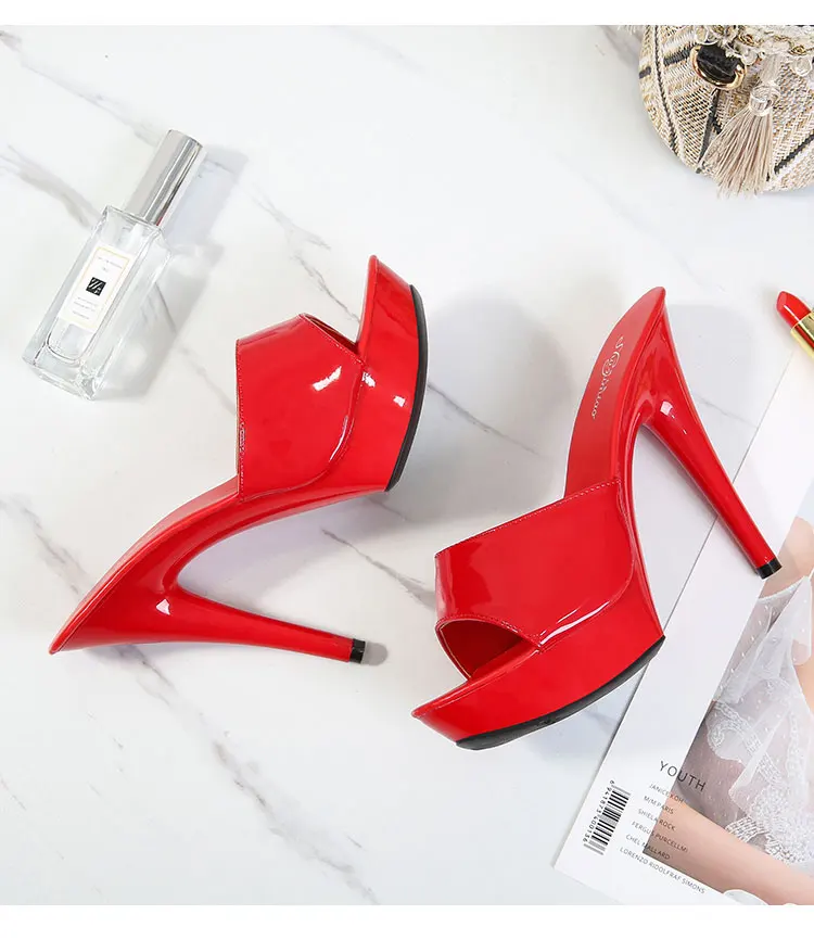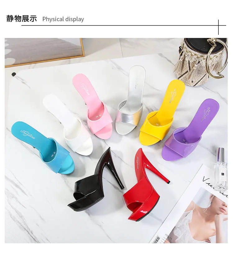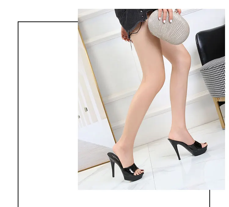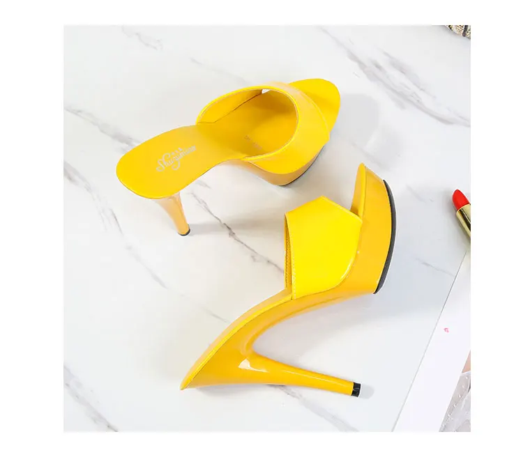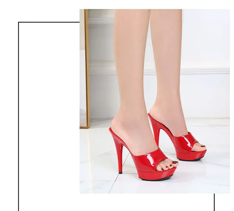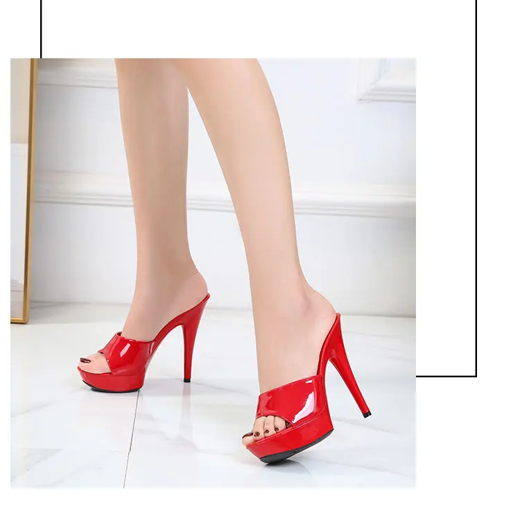 Туфли женские на тонком каблуке 13 см, тапочки на платформе туфли-лодочки из лакированной кожи, пикантная обувь, сандалии на высоком каблуке для стриптиза, лето 2020