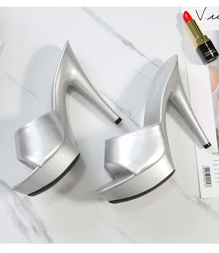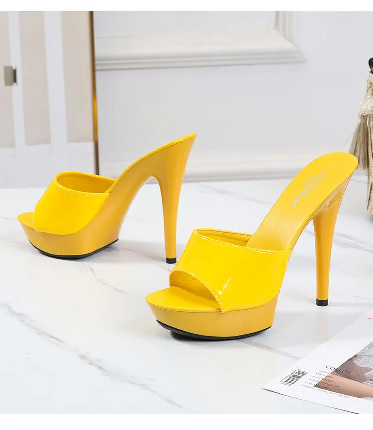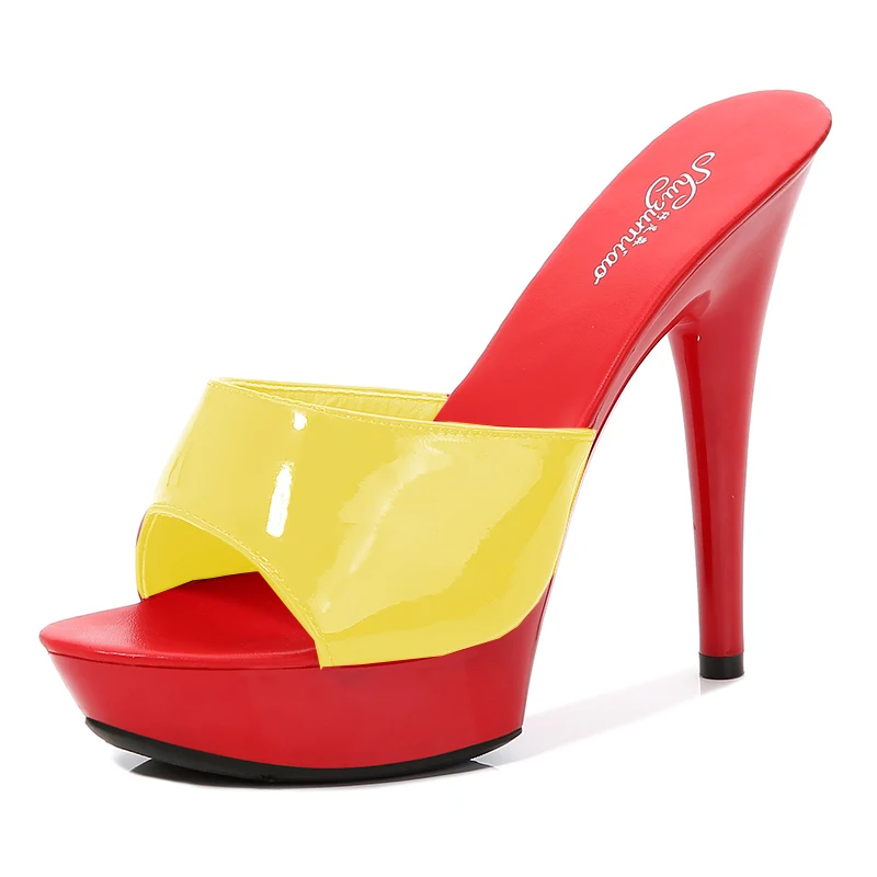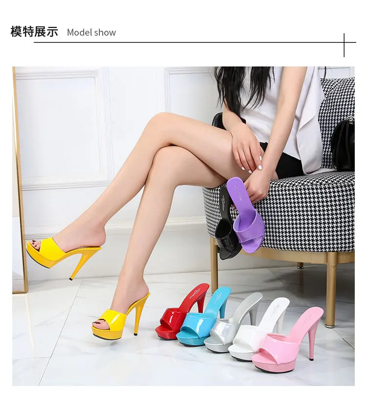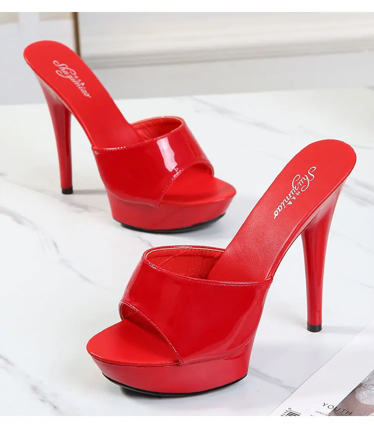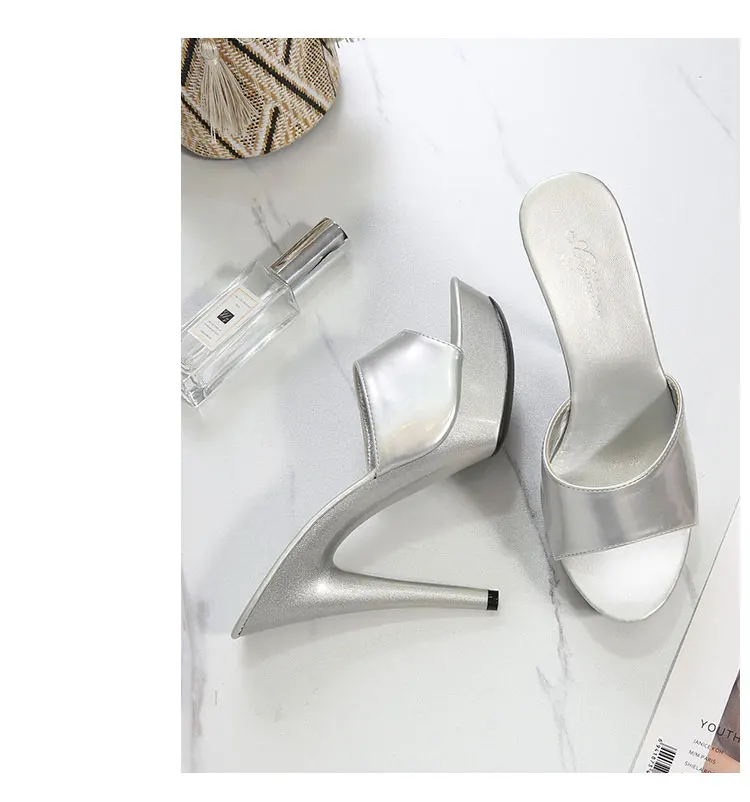 Туфли женские на тонком каблуке 13 см, тапочки на платформе туфли-лодочки из лакированной кожи, пикантная обувь, сандалии на высоком каблуке для стриптиза, лето 2020