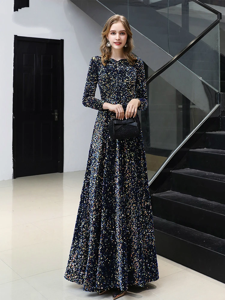Новые Элегантные Выпускные платья с длинным рукавом Женские официальные платья до пола с блестками для вечервечерние