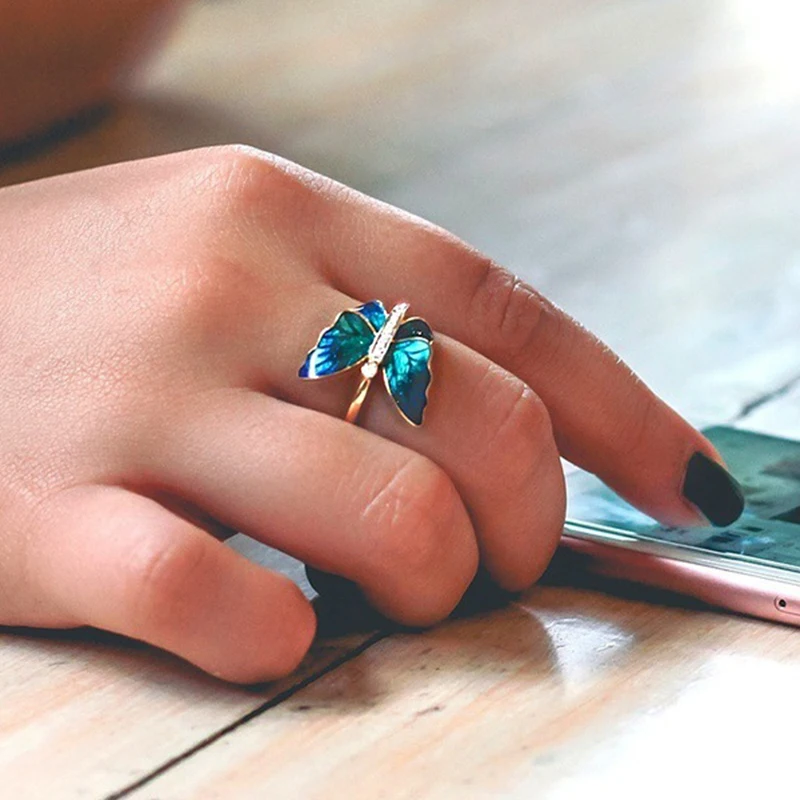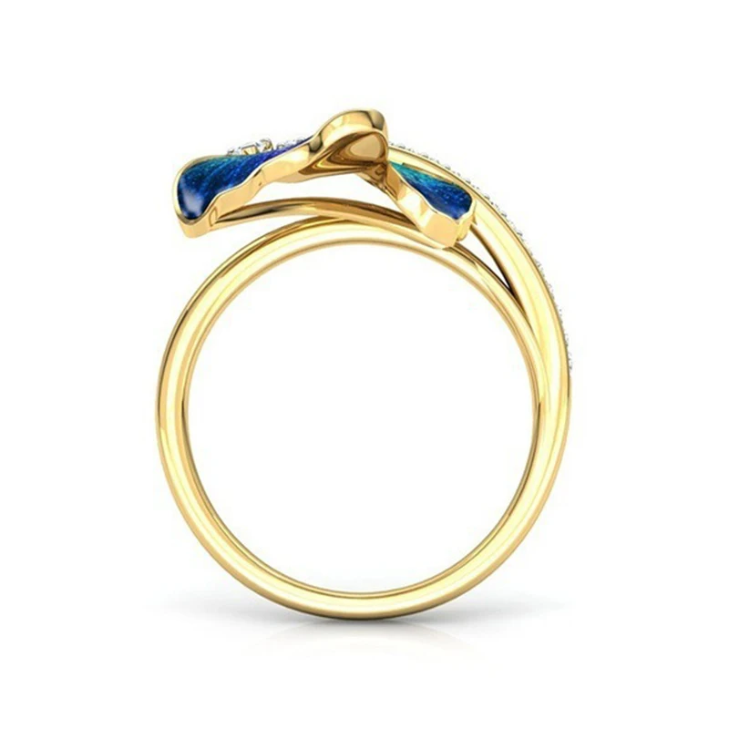 Креативное очаровательное кольцо с синей бабочкой для женщин, элегантное женское свадебное кольцо золотого цвета, аксессуары, модные ювелирные изделия, подарки для девушек