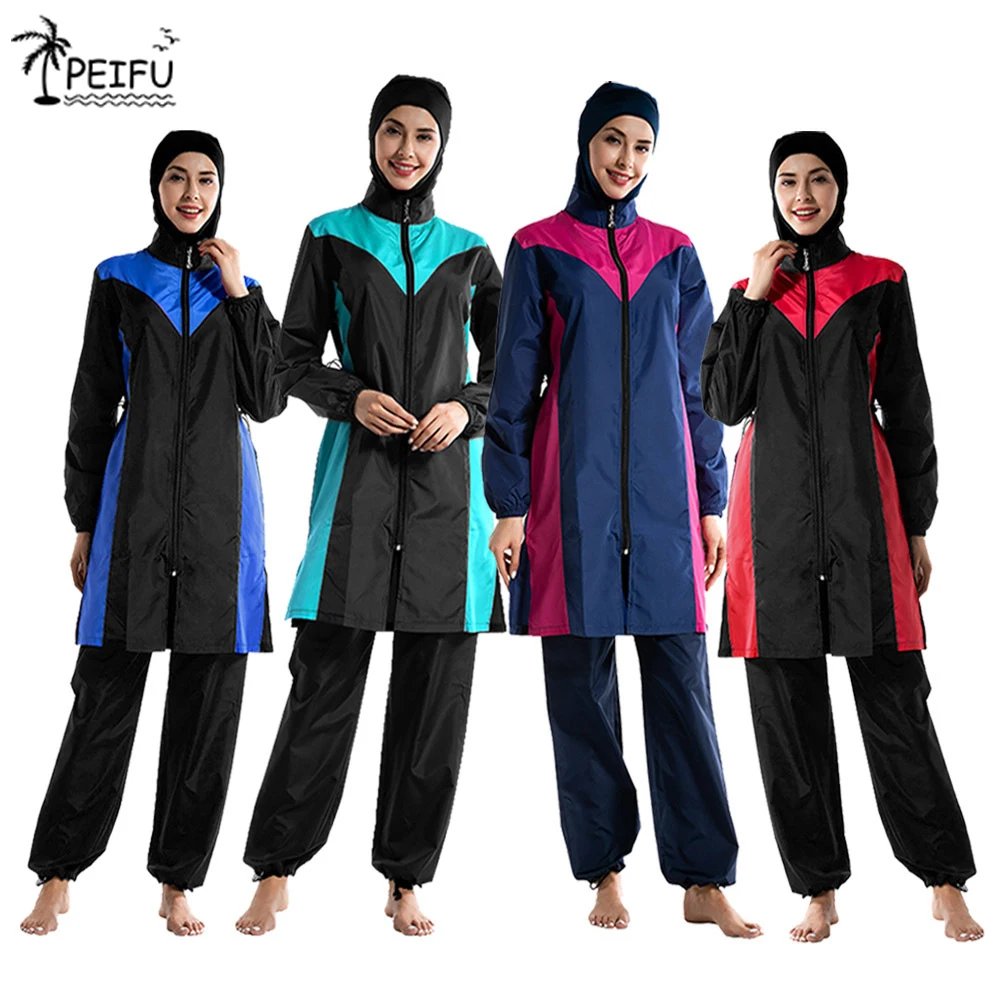 Купальный костюм с хиджабом для плавания PEIFU, Мусульманский купальник для фитнеса, скромный длинный, для активного отдыха, пляжная одежда