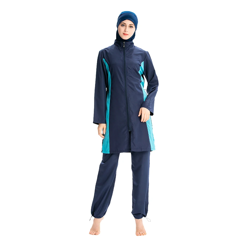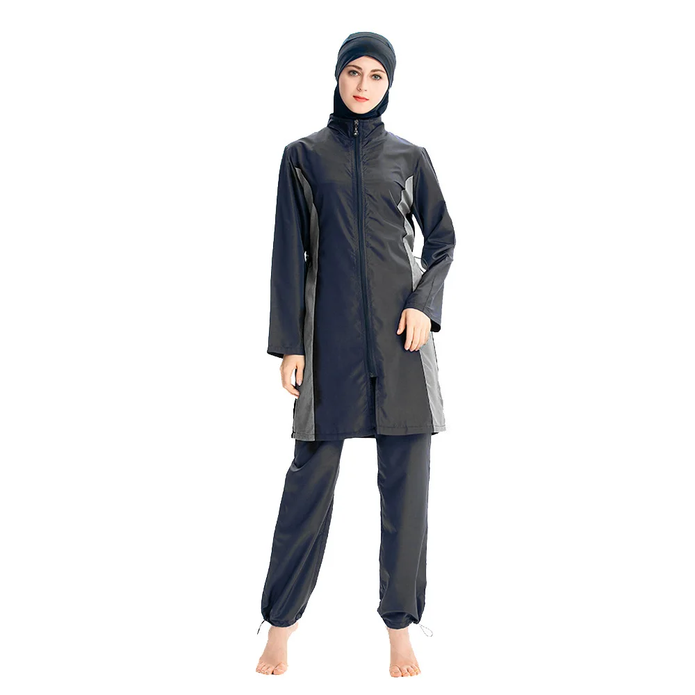 Женские мусульманские купальники PEIFU Colorblock, брюки с капюшоном, купальный костюм, хиджаб, элегантная Спортивная модная мусульманская пляжная одежда из трех частей