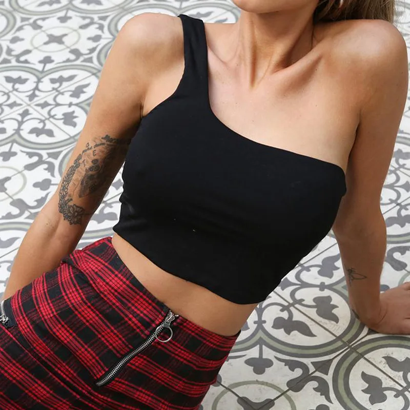 Летние женские повседневные топы на одно плечо без рукавов, укороче...