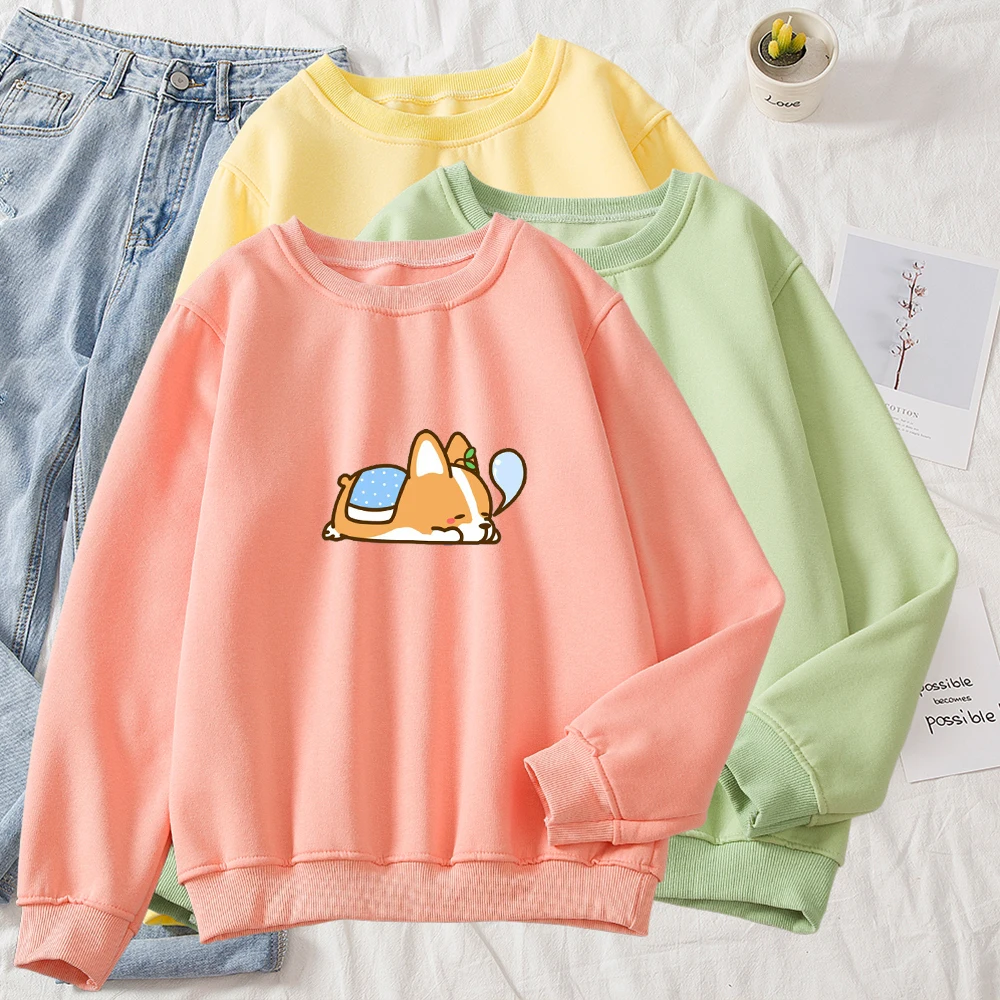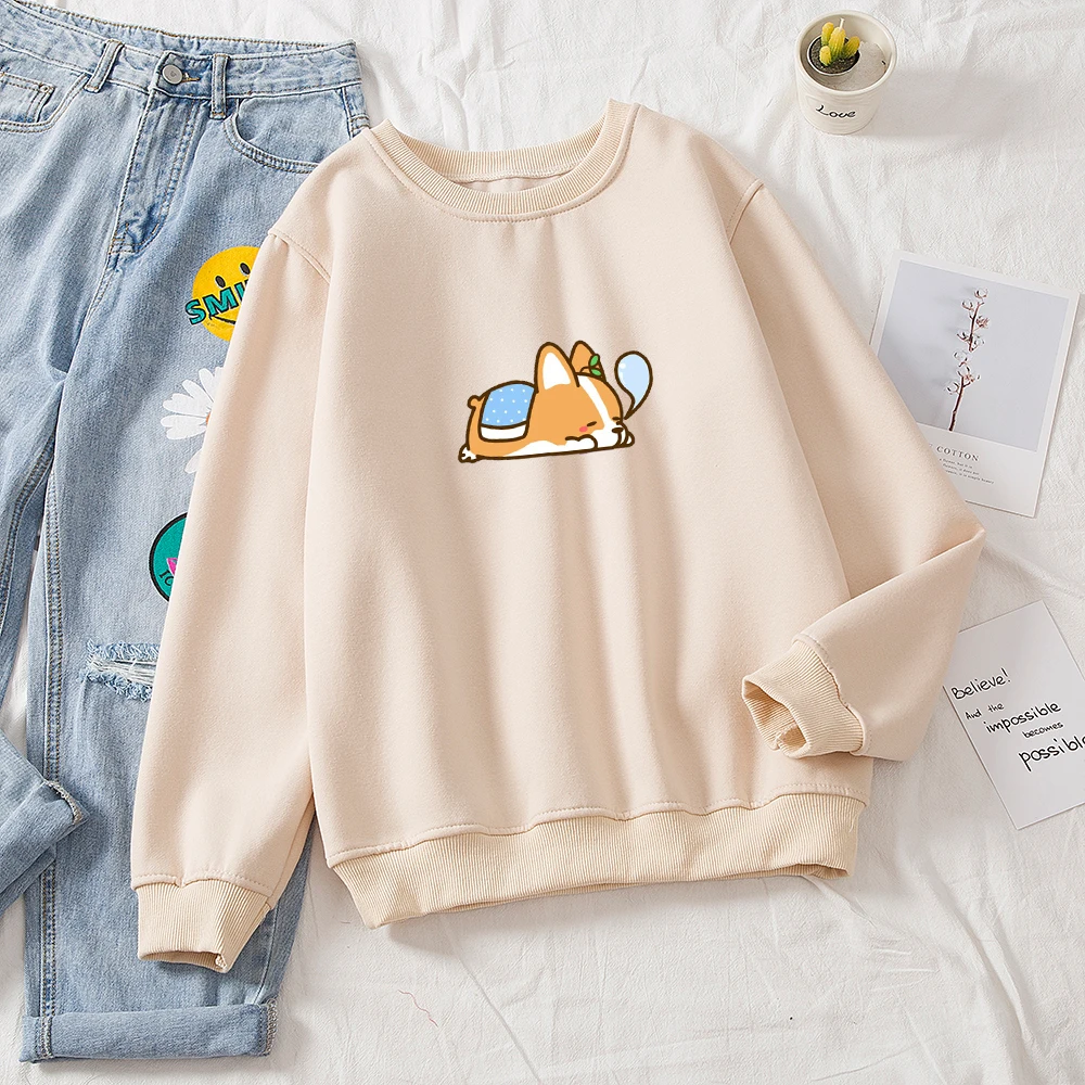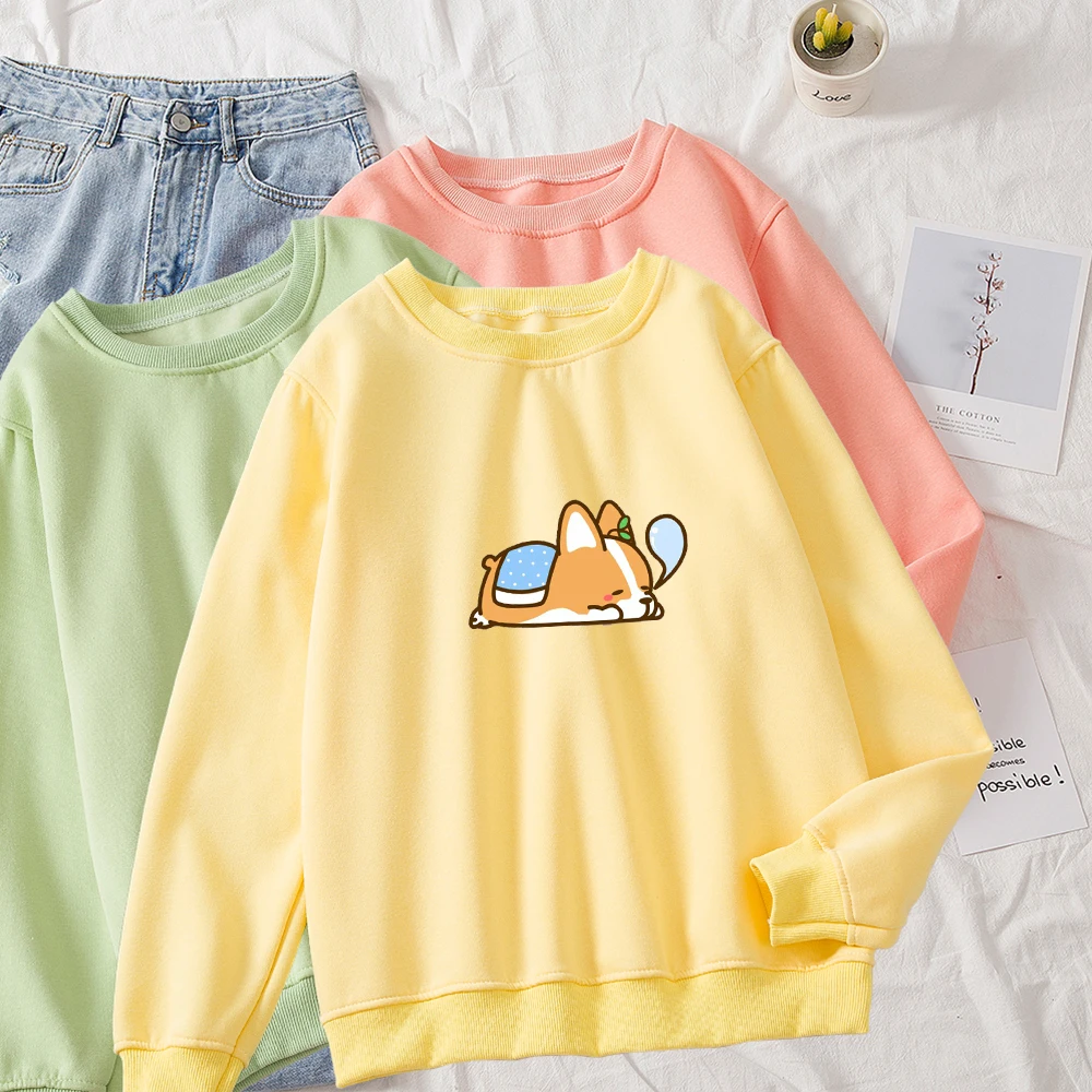 Новая модная Толстовка Kawaii, осень, ленивый корги, милый Принт, Женский эстетический Kpop, повседневные толстые толстовки для девочек, Женская толстовка