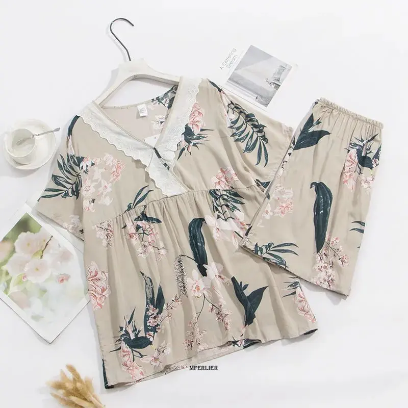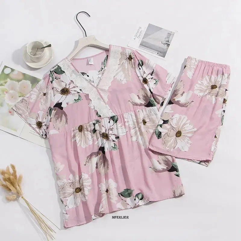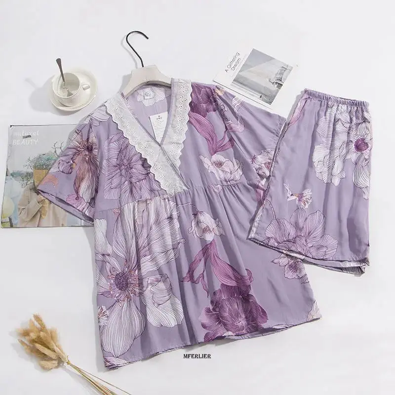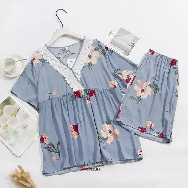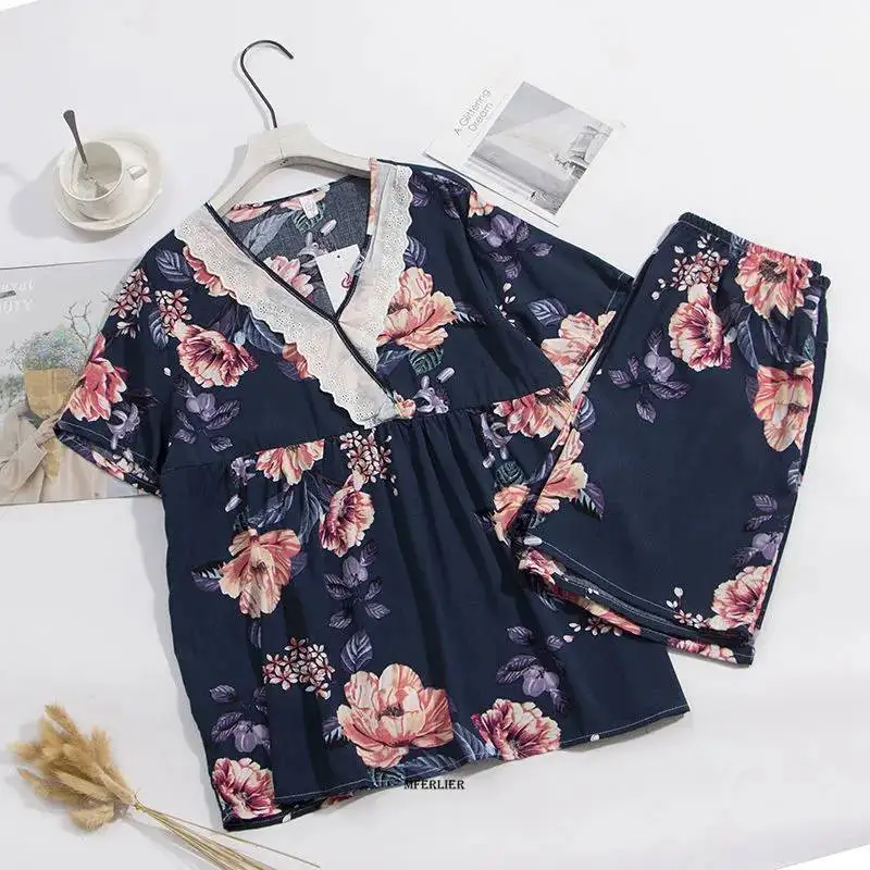 Женская летняя Пижама с цветочным принтом и коротким рукавом