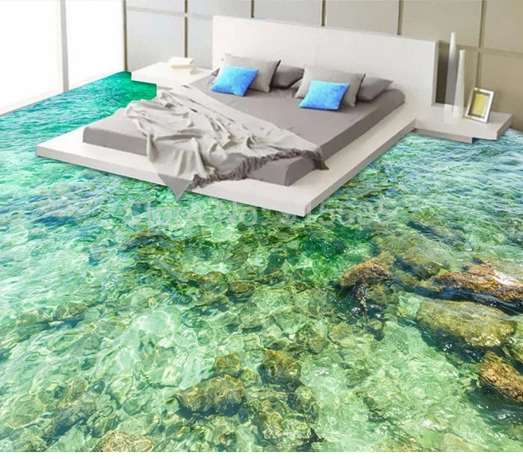 Виниловые самоклеящиеся обои на заказ с изображением морской воды, волны, ПВХ, 3D наклейка для пола, для гостиной, спальни, пола