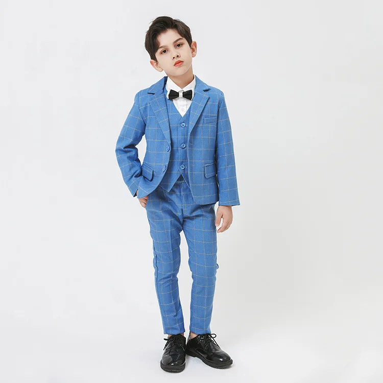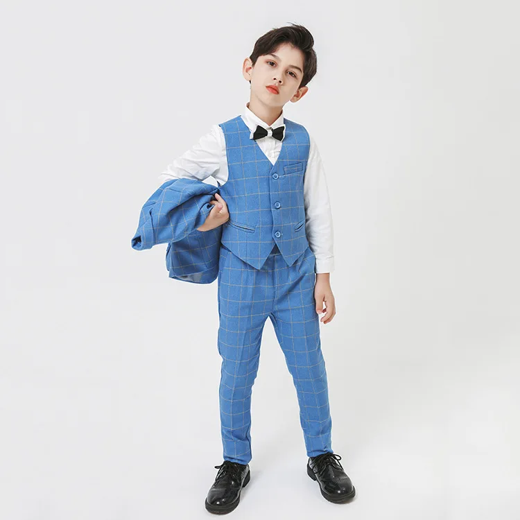 Строгий пиджак с цветочным принтом для мальчиков, жилет и брюки костюм из 3 предметов детское платье для свадьбы, дня рождения детский смокинг, костюм для выпускного вечера
