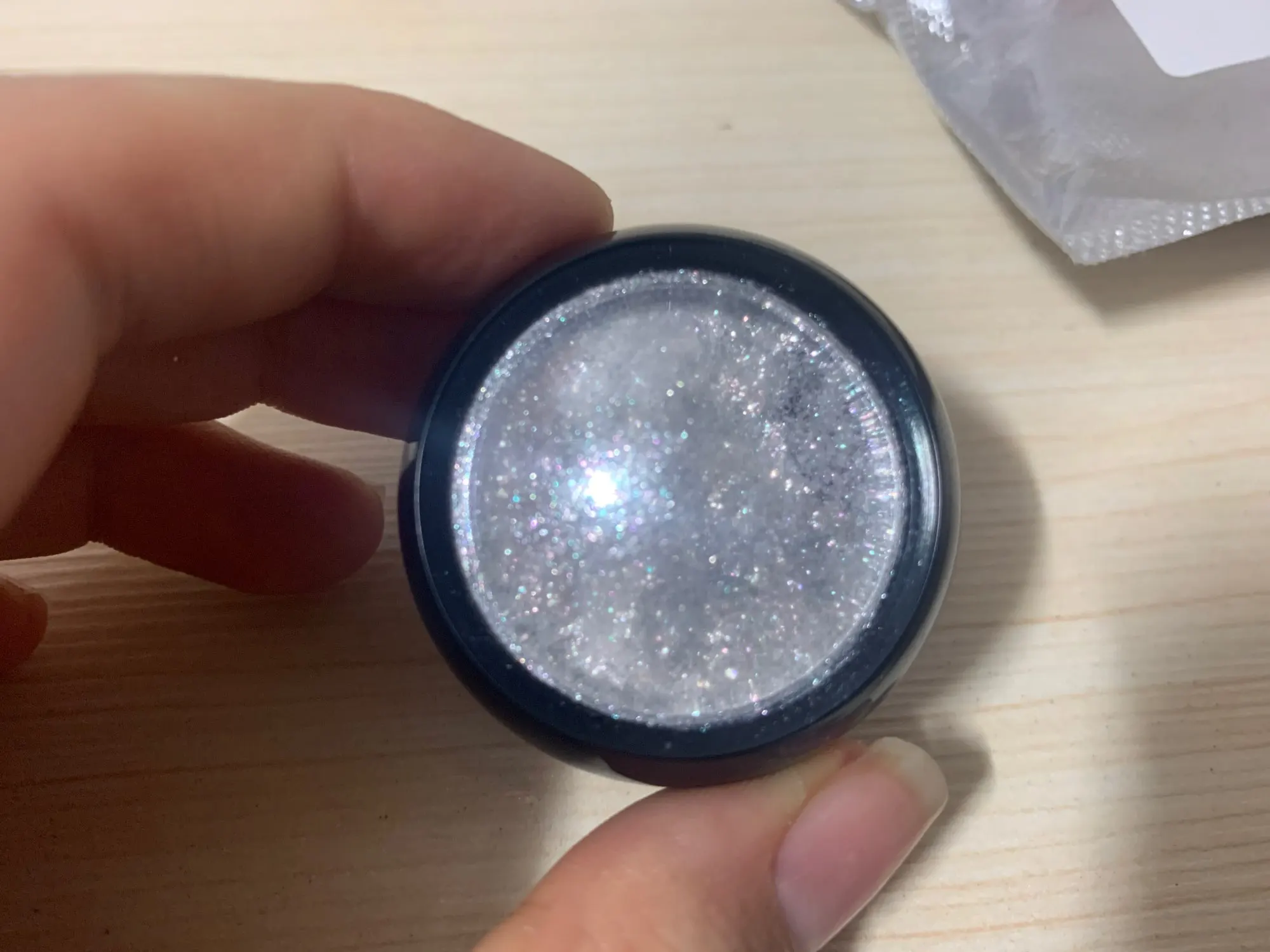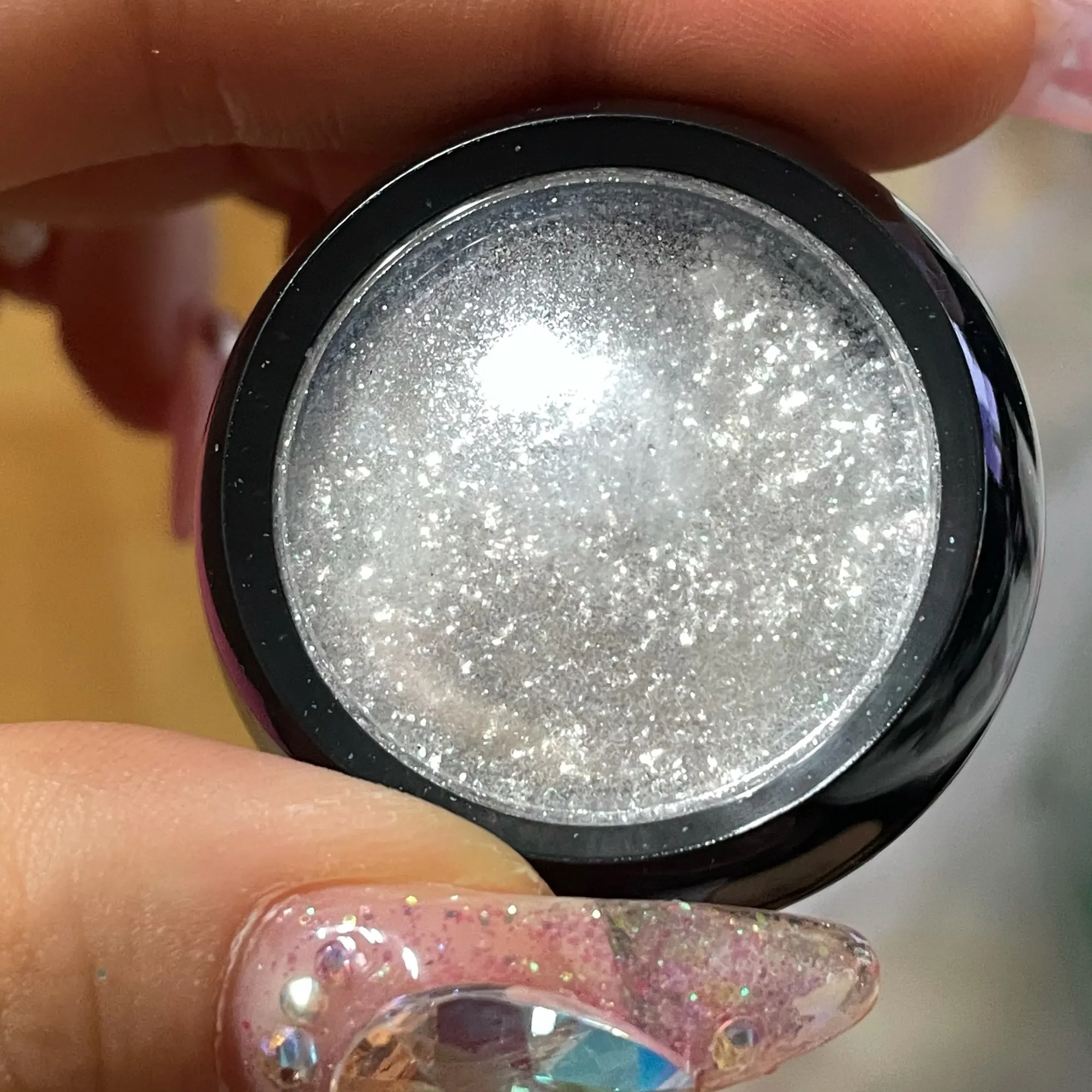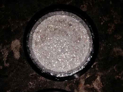 на фото это выглядит как прозрачно-белые блестки-пигмент, не знаю, красиво очень, но вживую это больше похоже на серебристую втирку.