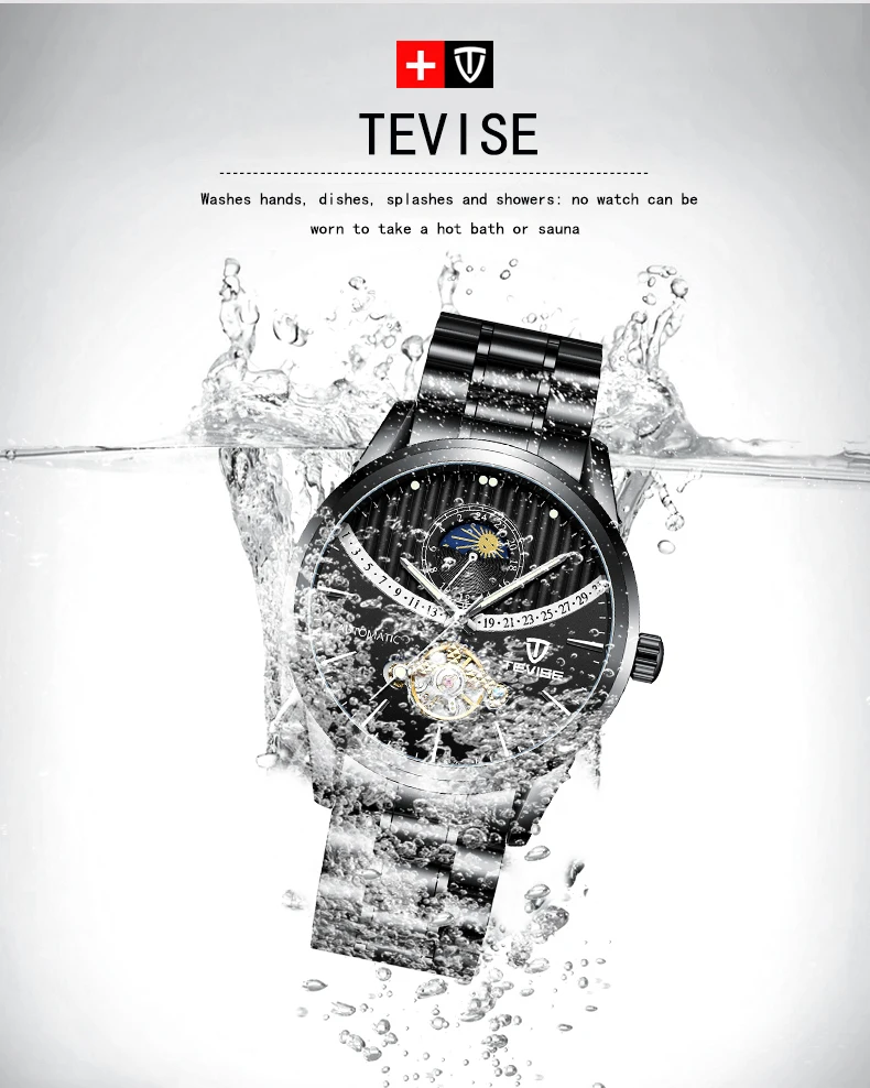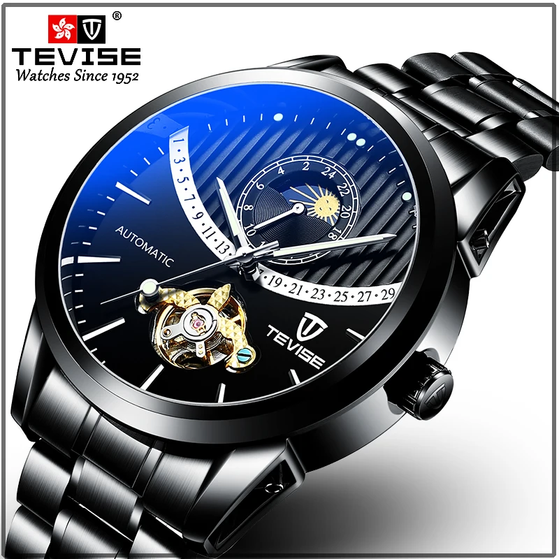 Мужские механические наручные часы TEVISE 8378F, мужские часы с Лунной фазой, светящиеся руки, водонепроницаемые мужские автоматические часы, мужские часы 2020