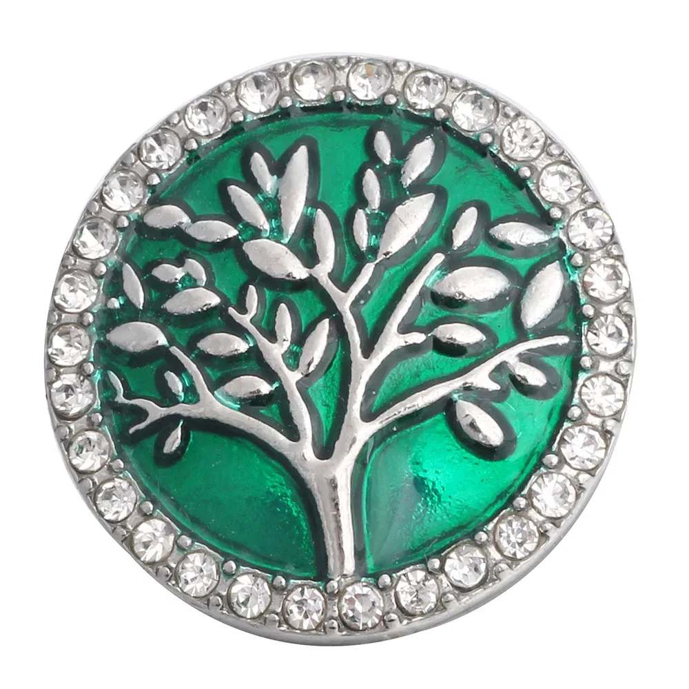 Новинка, ювелирные изделия с зелеными кристаллами, деревом, стрекозой, сердцем, кнопки сделай сам, Имбирные амулеты для браслетов, 18 мм, 5 шт.лот