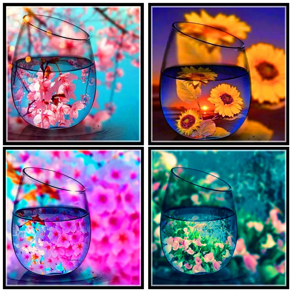 5D алмазная живопись, чашка, Цветочная сцена, сделай сам, круглый набор для алмазной вышивки, мозаика, украшения для дома