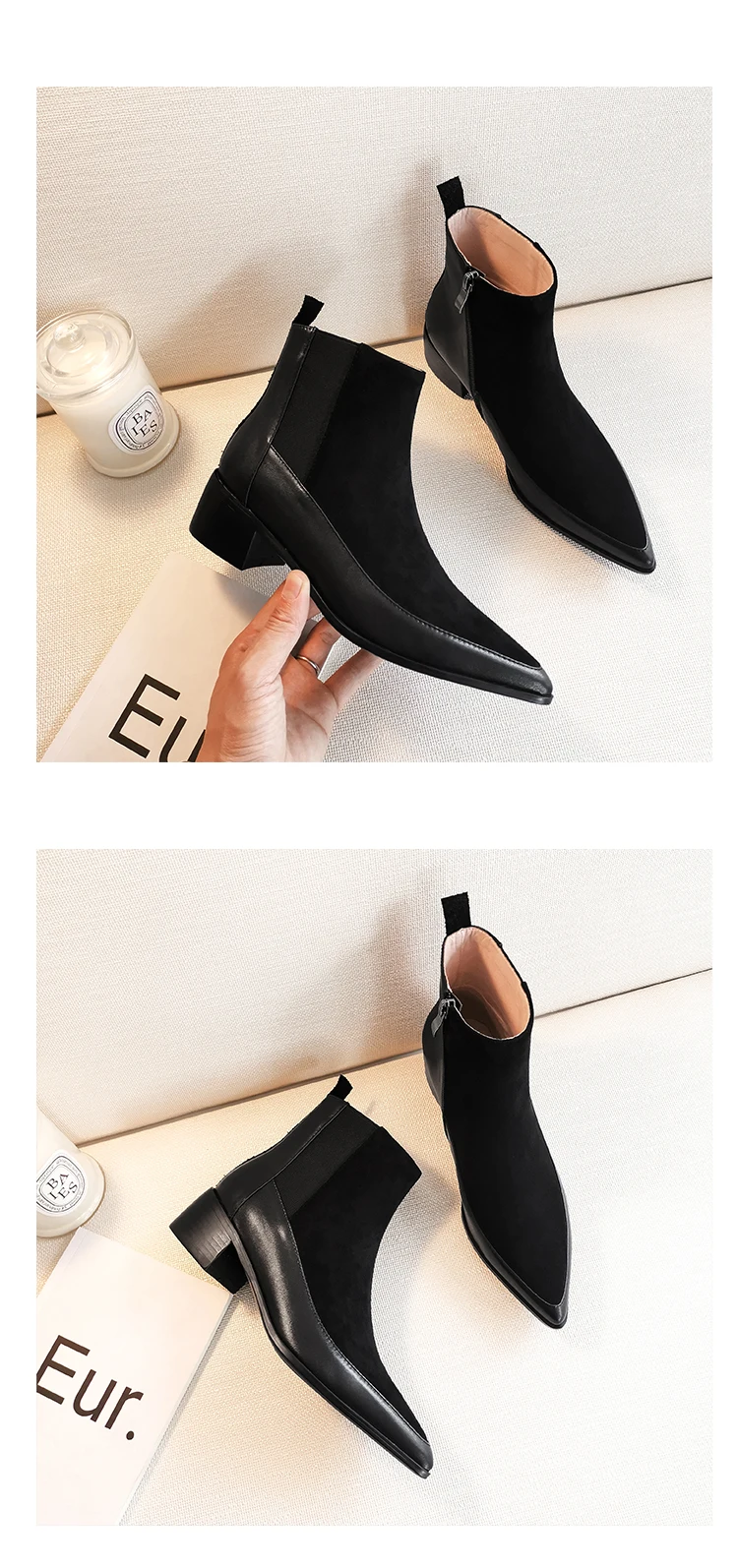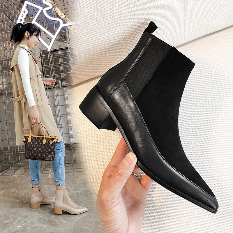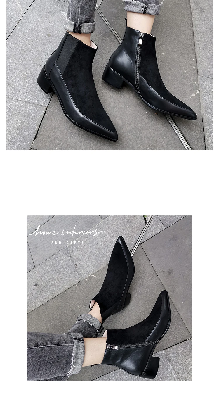 Женские ботильоны; Натуральная кожа; 22-24,5 см длина ноги ботильоны для женщин; Кожаные вставки; Он-лайн в стиле знаменитостей; Обувь Челси