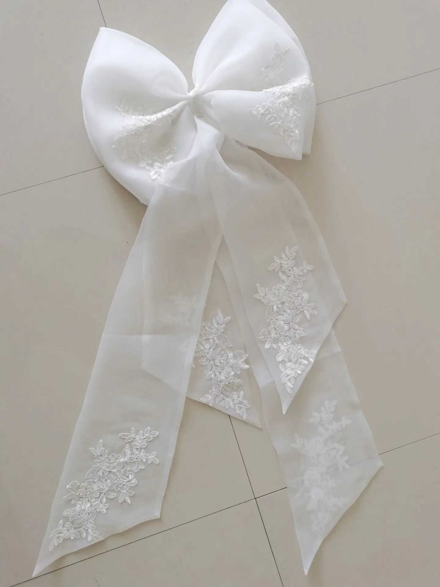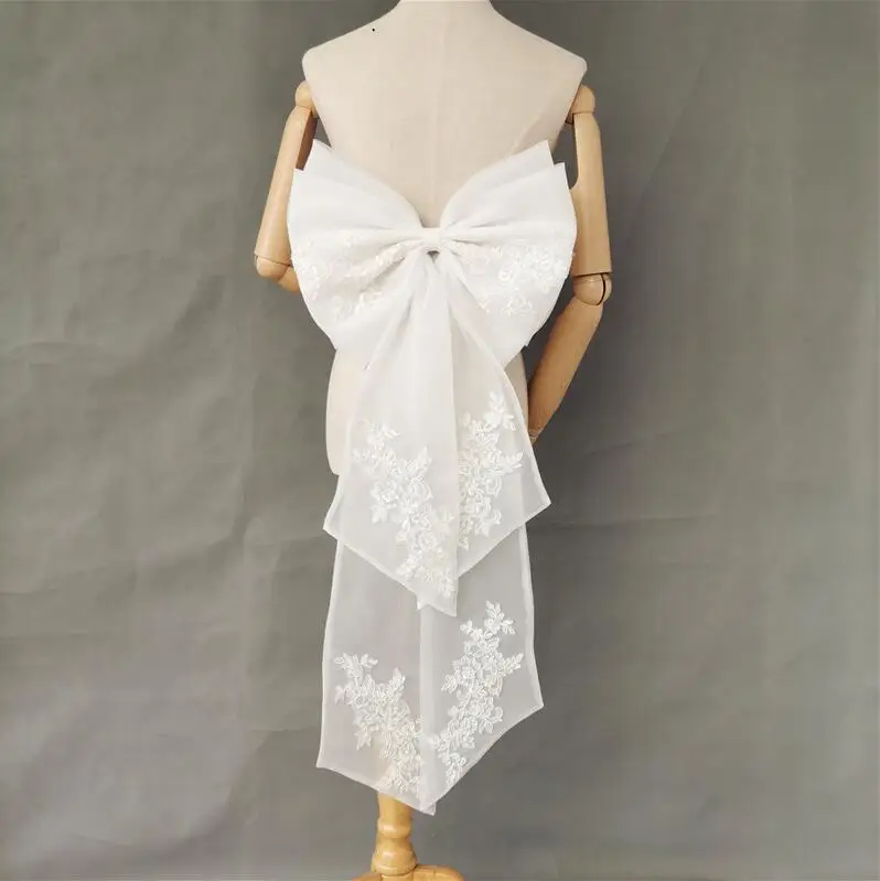 Раздельный бант из органзы цвета слоновой кости, аппликация, свадебное платье, узлы, белые Съемные платья невесты, узлы с лентой