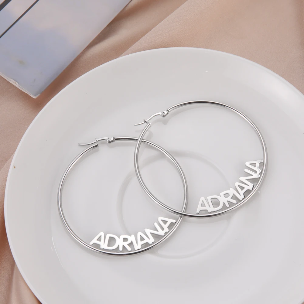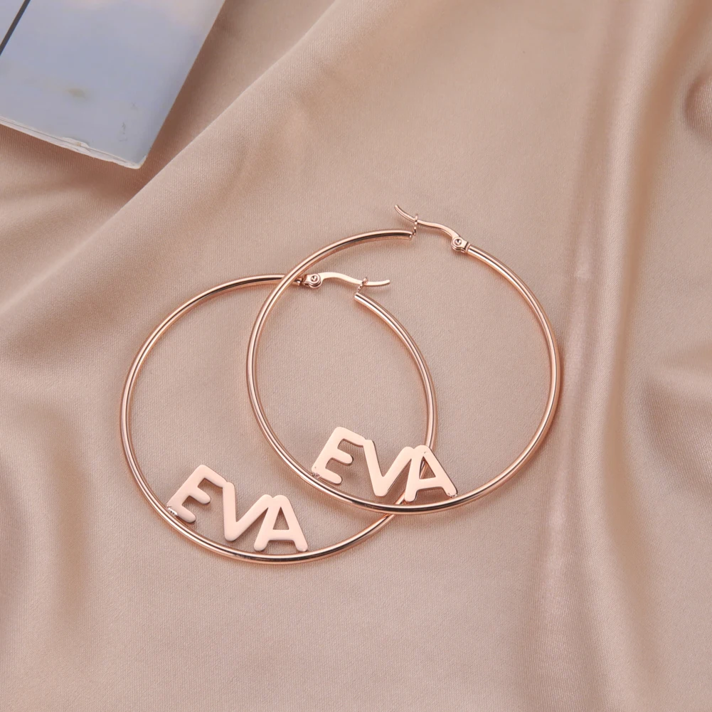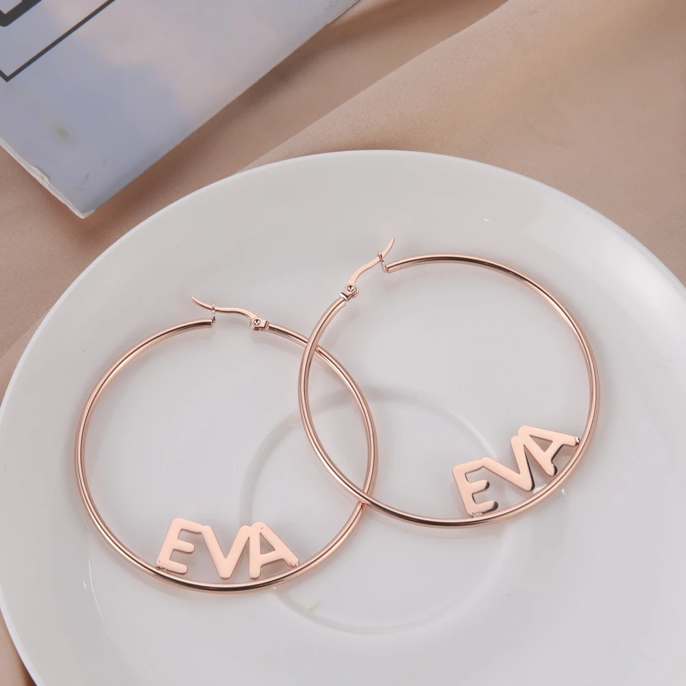 Яркие серьги с именем, серьги из нержавеющей стали, круглые серьги ...