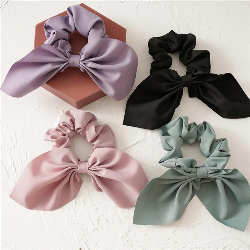 2020 горячая Распродажа резинки для волос с кроличьими ушками, завязываемые резинки для волос, черные, синие, розовые, желтые резинки для волос, бант, держатель для хвоста, кольцо для волос