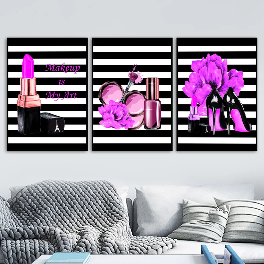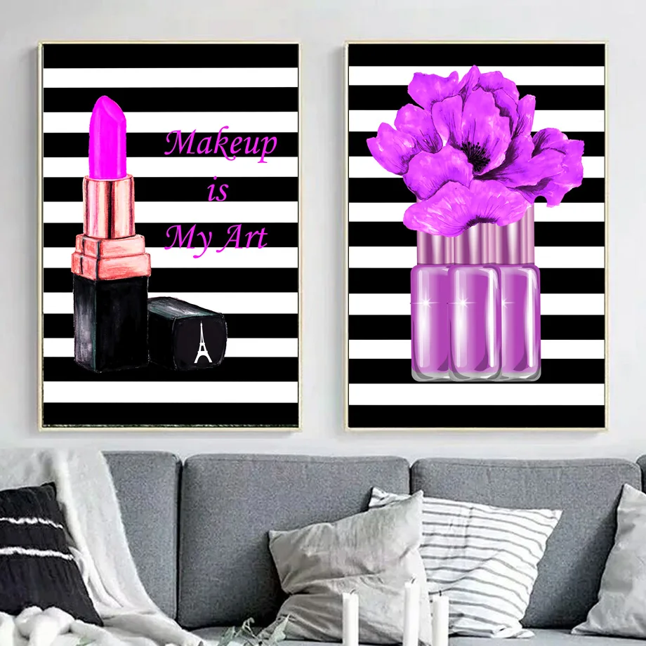Фиолетовый цветок губная помада лак для ногтей макияж настенная живопись холст скандинавские постеры и принты настенные картинки для декора гостиной