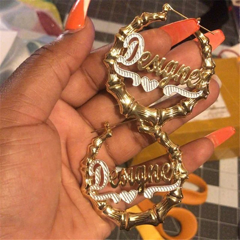Набор из бамбуковые обручи серег в стиле хип-хоп, с именем на заказ...