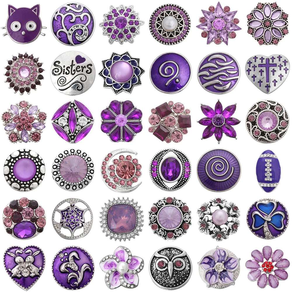5 шт.лот новые фиолетовые украшения со стразами и цветами, 20 мм, 18 мм, металлические кнопки, для самостоятельного изготовления браслета, ожерелья