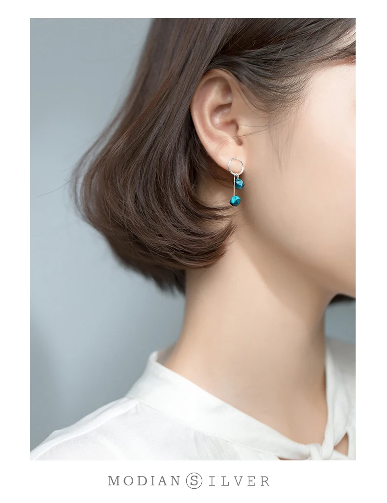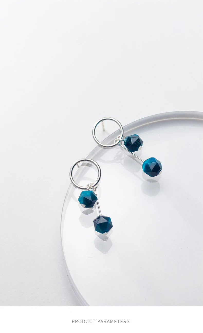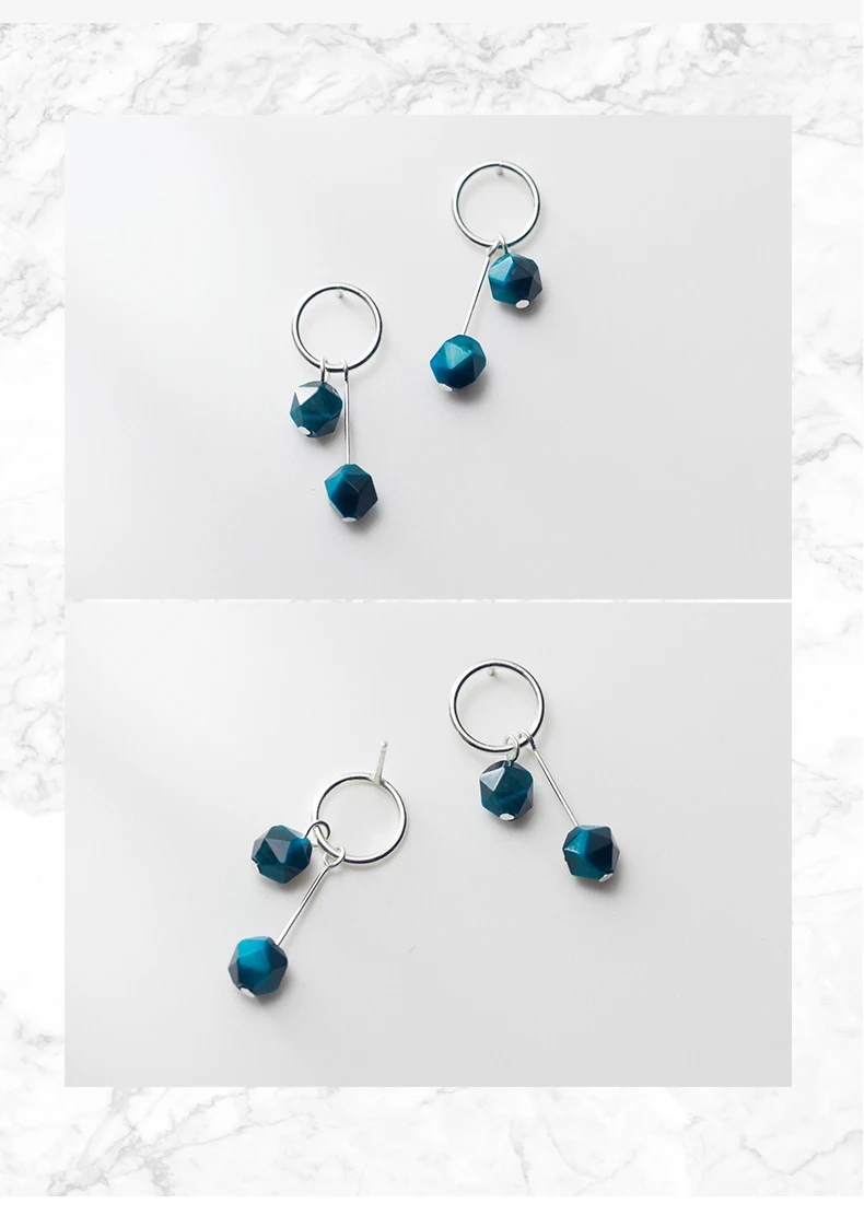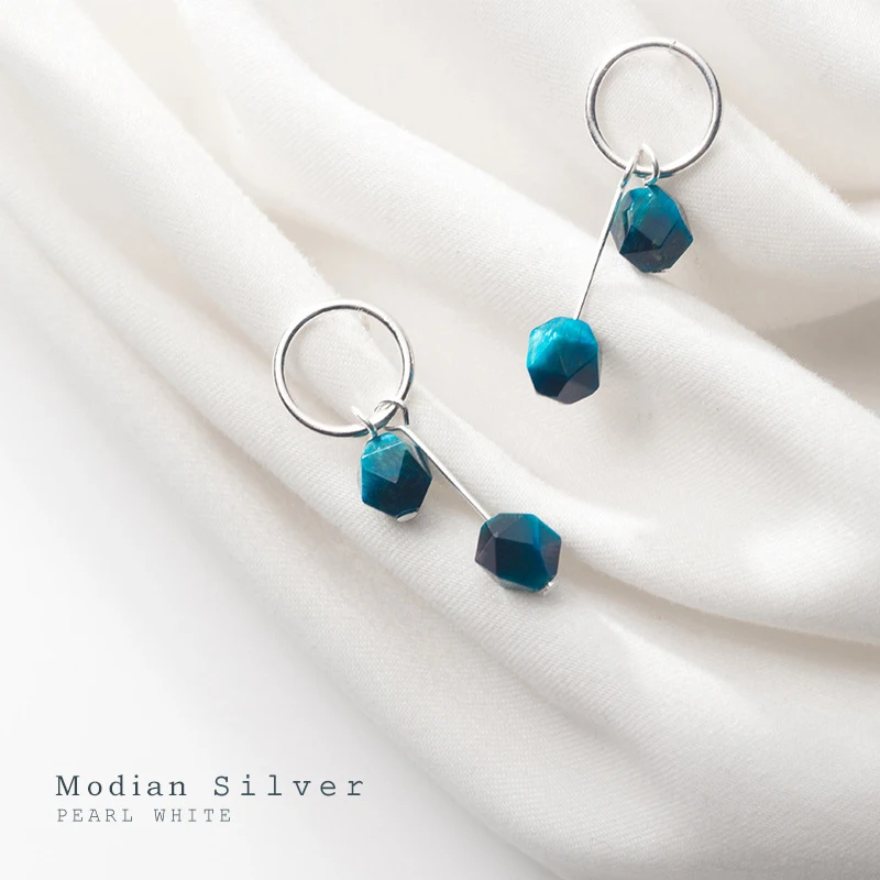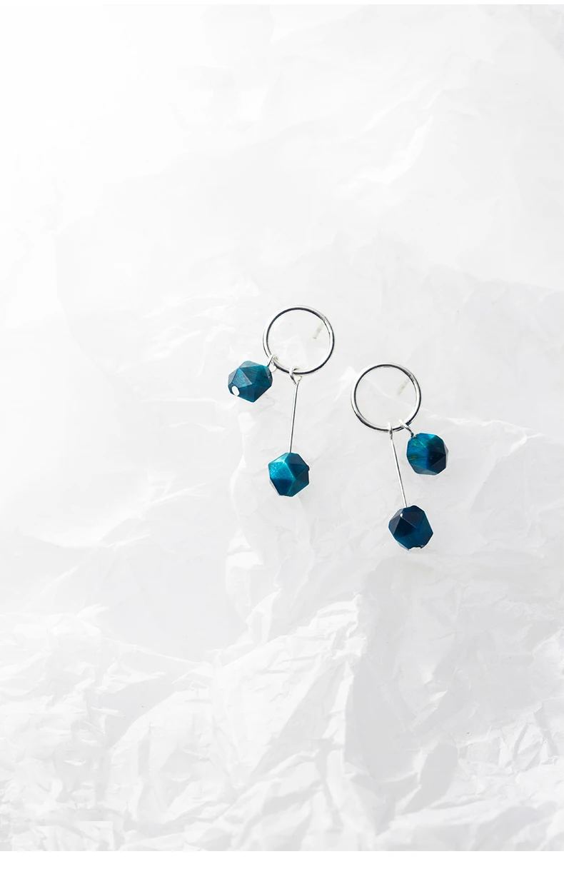 Женские серьги из серебра круглая капля серьга пробы, с синим тигровым глазом, геометрические, 925
