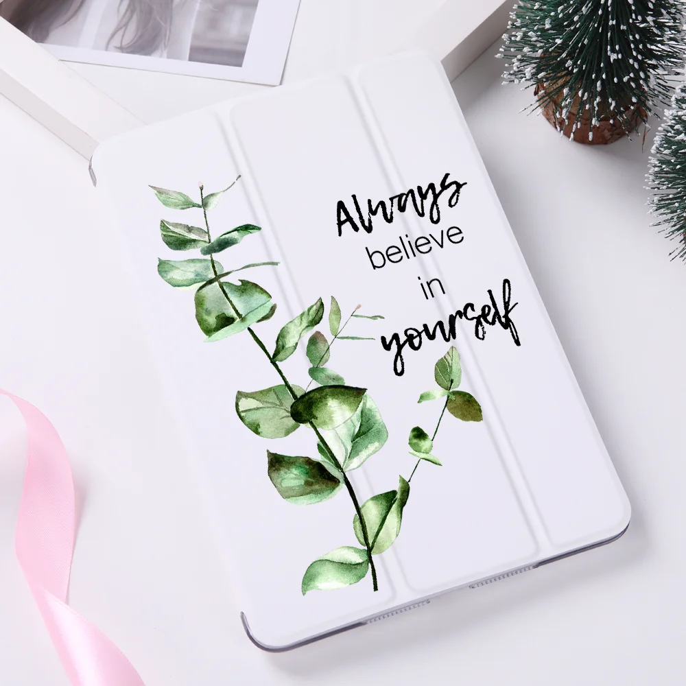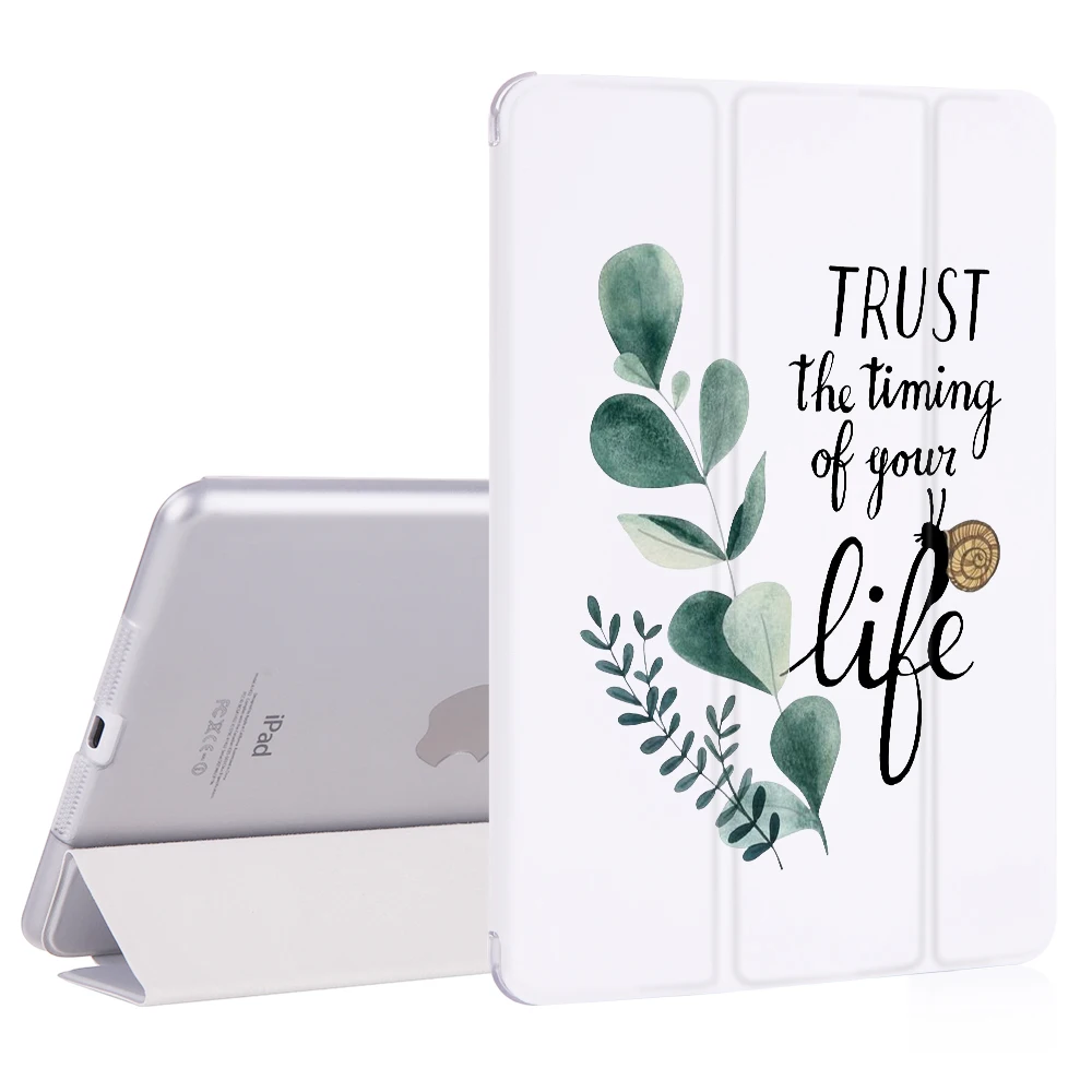 Чехол для Ipad 2 3 4 из белой искусственной кожи, жесткий чехол-накладка с листьями и надписью, защитный чехол для 2020 iPad Pro 11 12,9 10,5 7,9 дюйма Mini 1 2 3 5
