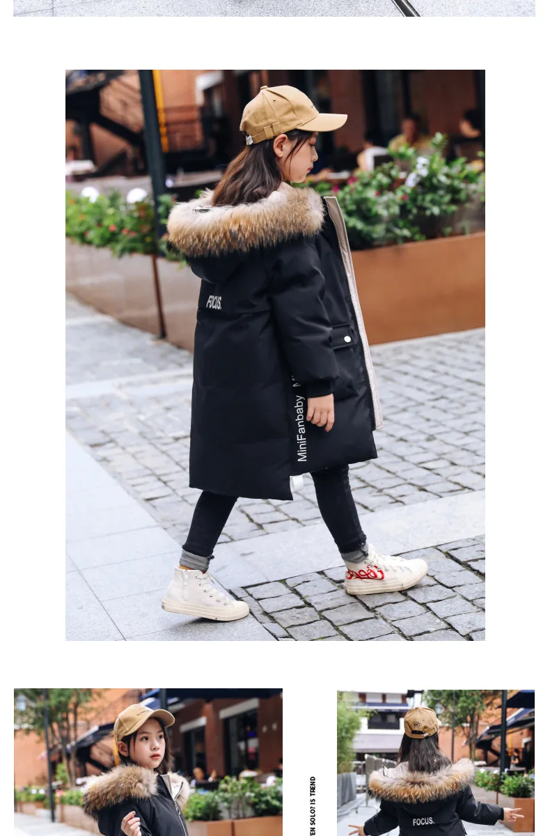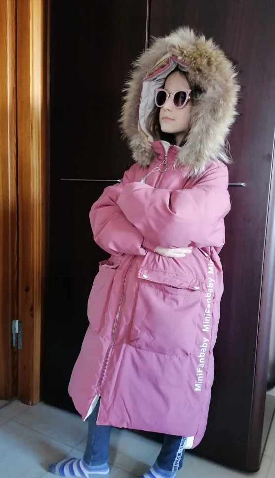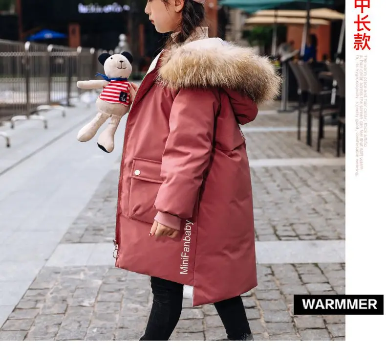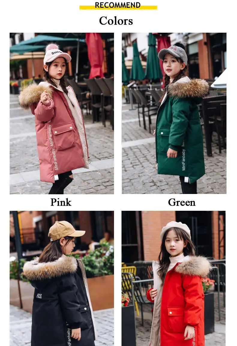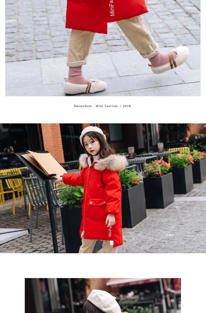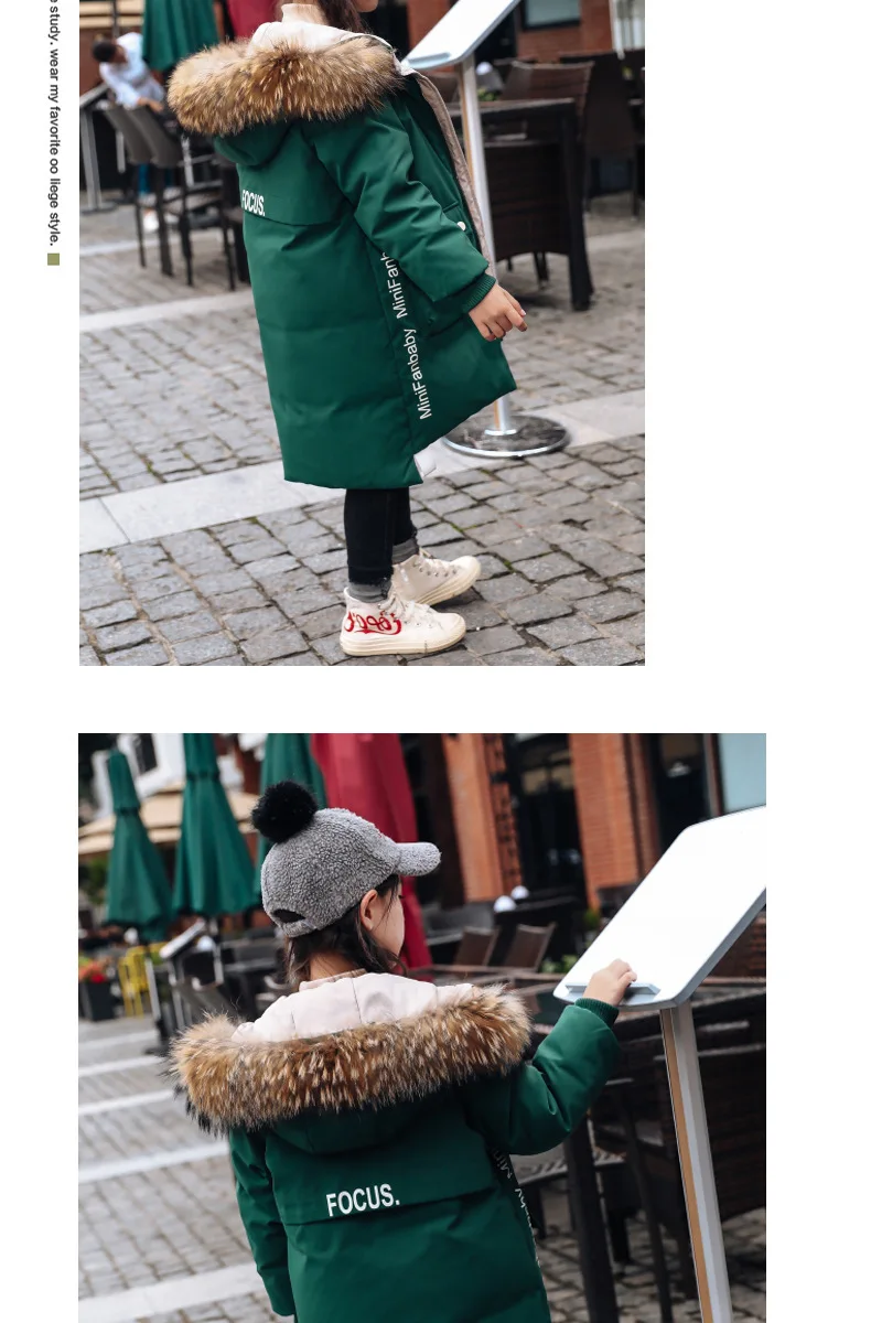 Детский пуховик с натуральным мехом, для девочек, для русской зимы, водонепроницаемый, с капюшоном, для морозов до-30 градусов, TZ553