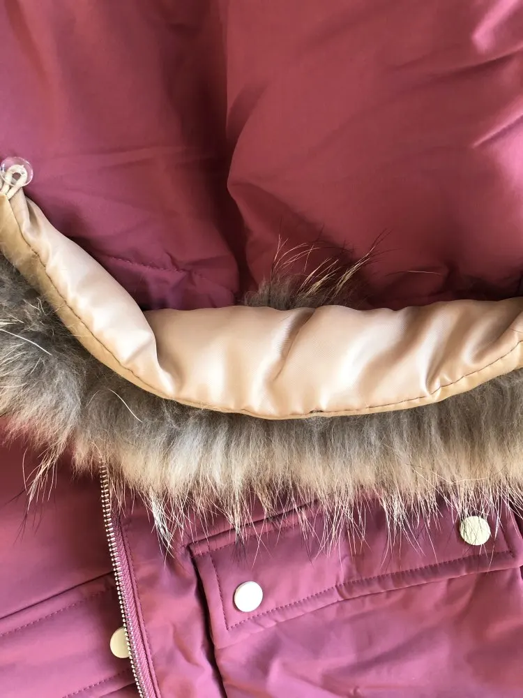 Отличный пуховик по выгодной цене, доставка не заставила себя ждать. Продавец ответил на все вопросы, помог определиться с размером. На ребёнка 7,5 лет взяла 7Т, на этикетке размер 140. Цвет красивый пыльная роза. Мех не такой пышный как на фото продавца, но смотрится очень достойно, мех натуральный. Рекомендую к покупке однозначно!