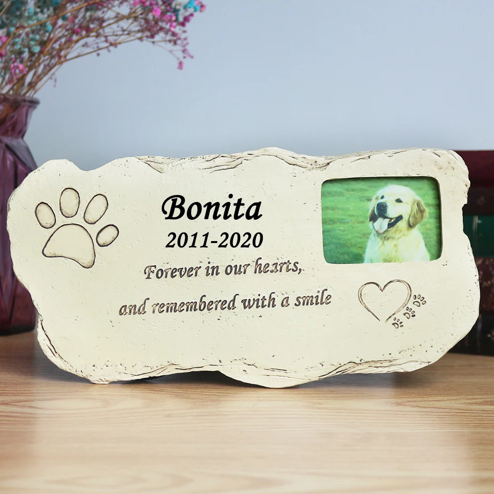Персональный мемориальный камень для домашних животных с фоторамкой с принтом лапы, памятник для питомцев, надгробная плита для собак, кошек, JSYS
