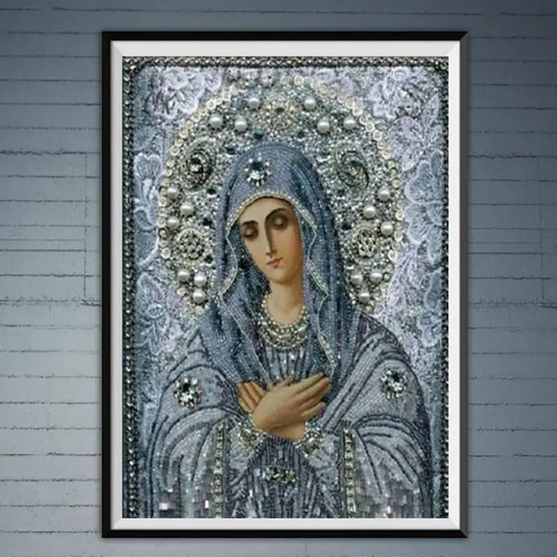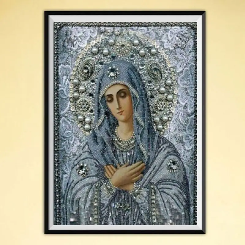 Набор для алмазной живописи 5D круглой формы с изображением девственницы