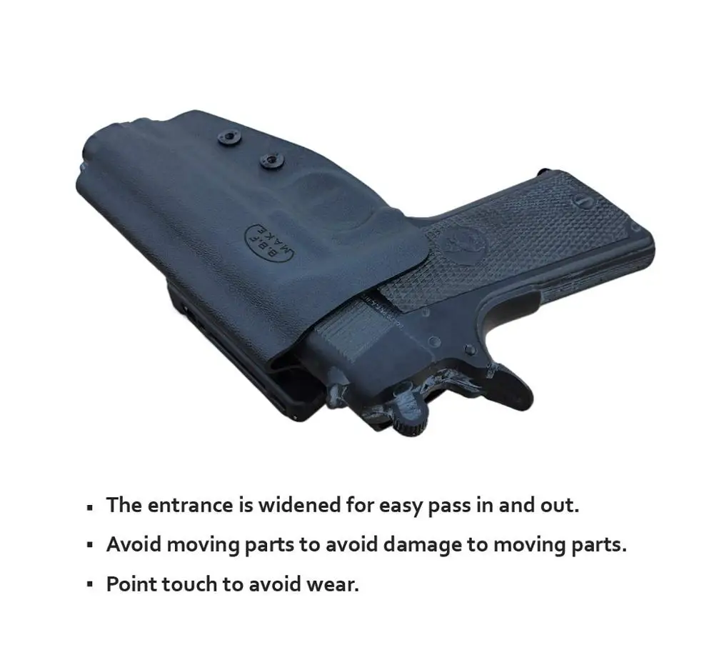 Высокое соответствие, без долбежей, без дрожания, без носки. Вход расширен, легко вставляется и вытягивается, не царапает корпус пистолета и отлично защищает ваш пистолет.