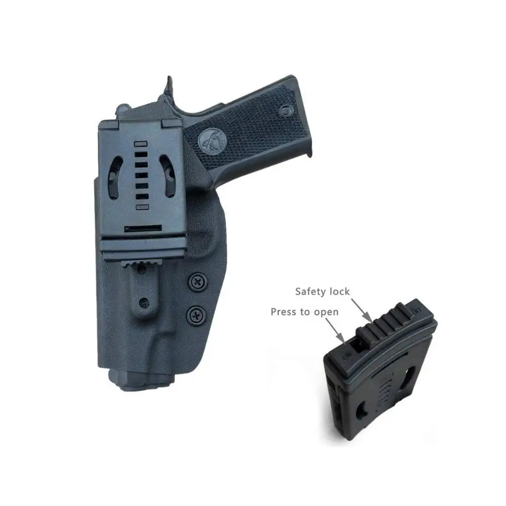 Кобура BBF делает Kydx OWB имеет звуковую систему блокировки Posi-Click, и пистолет имеет четкий звук «щелчок», когда он вставлен, так что вы знаете, что ваш 1911 пистолет плотно сидит. Отрегулируйте винт для достижения регулировки герметичности, чтобы достичь лучшей прочности извлечения и стремиться к самому быстрому времени хранения.