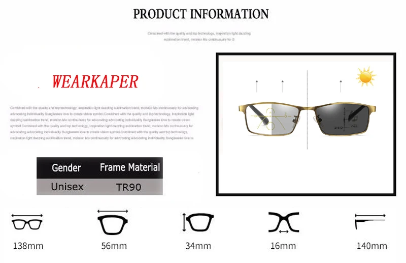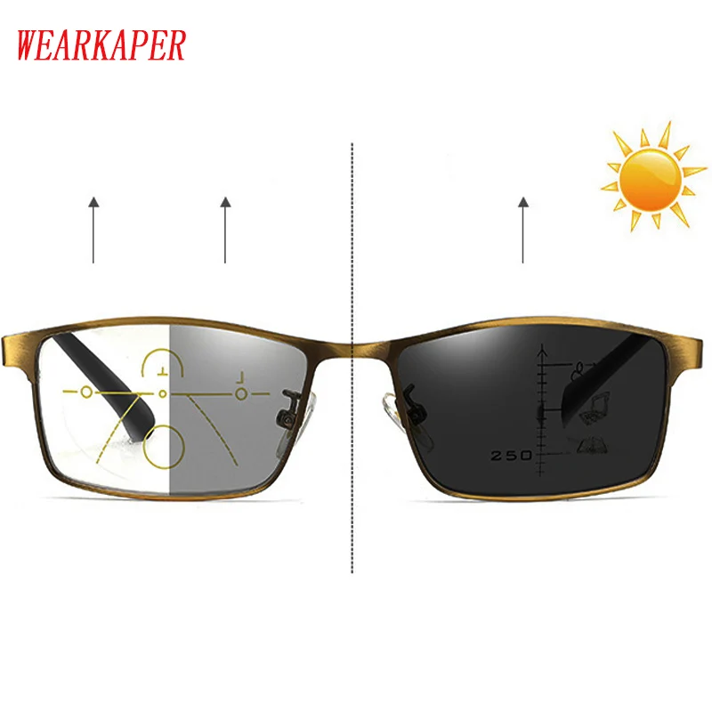Фотохромные очки для чтения WEARKAPER, мужские очки, прогрессивная фоторамка для женщин и мужчин, очки с диоптриями ближнего и дальнего зрения 1,5