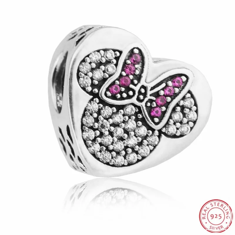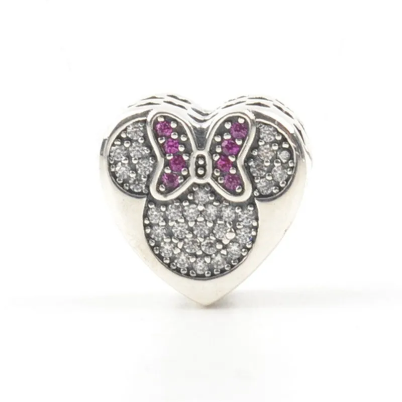 Настоящий 925 Стерлинговое Серебро Минни сердце шарма мультяшная мы...