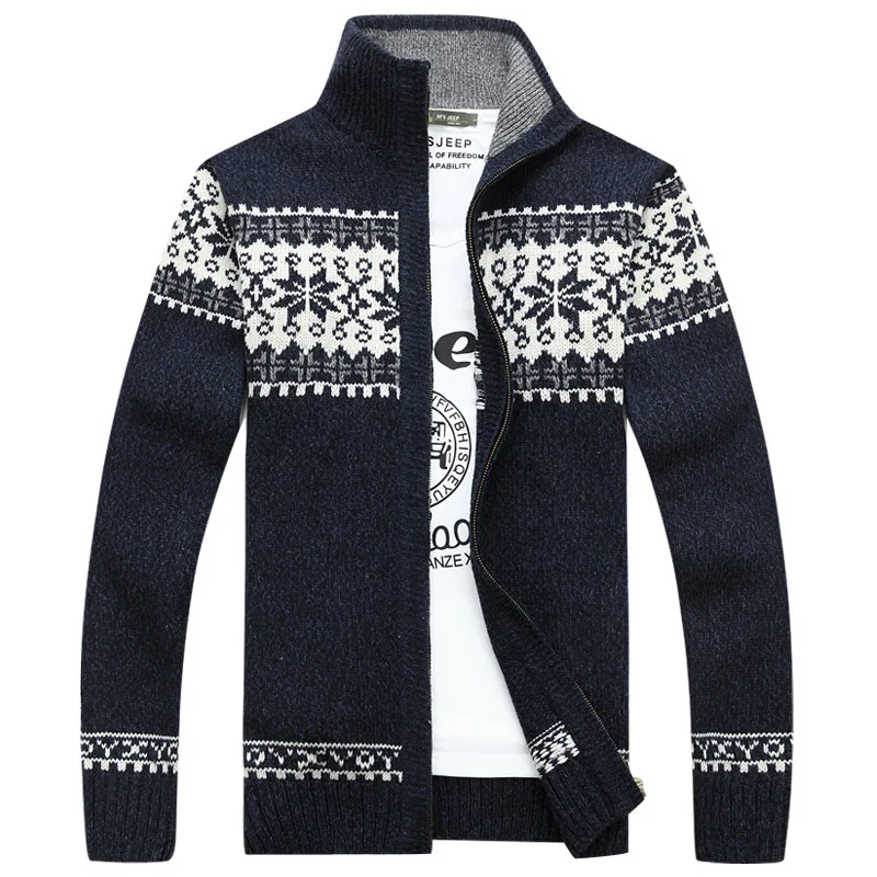 Мужской шерстяной кардиган, теплый толстый свитер составного кроя с воротником-стойкой и длинными рукавами, вязаный хлопковый повседневный жакет для осени и зимы