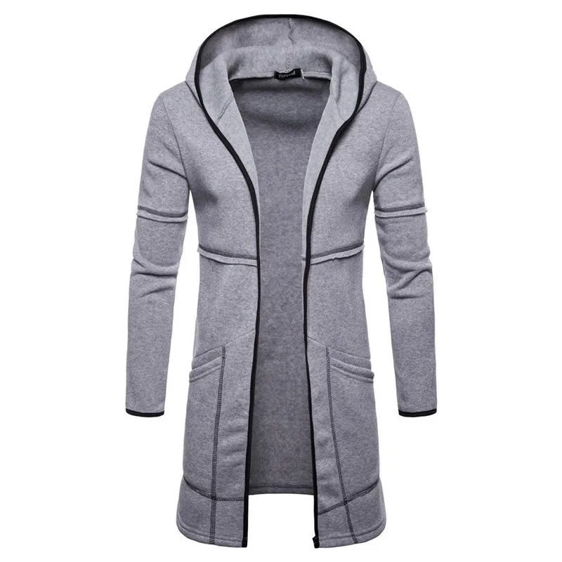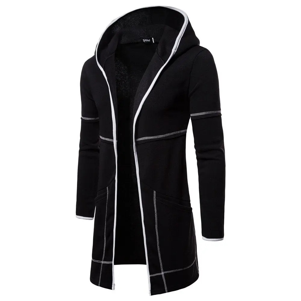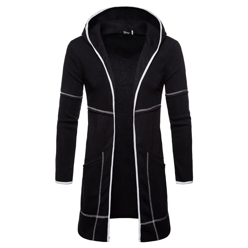 Мужской Хлопковый кардиган с капюшоном, модная теплая длинная одежда в стиле пэчворк с карманами, Свободный Повседневный вязаный мужской свитер, пальто, топ на осень и зиму