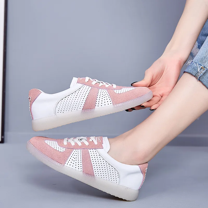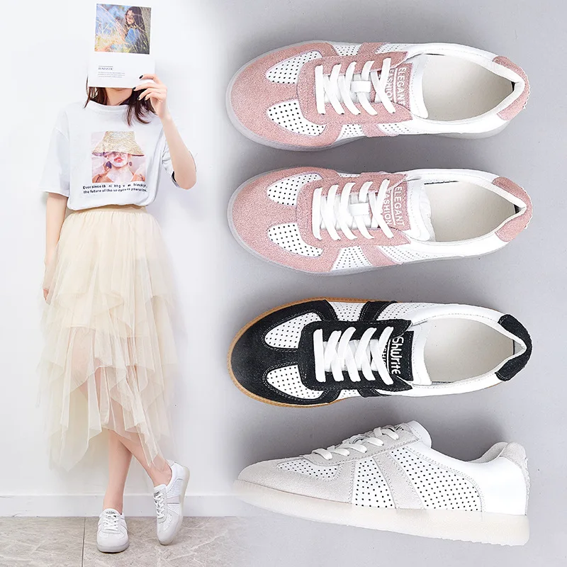 Женские кроссовки из натуральной кожи Tilocow, однотонные сетчатые кроссовки на плоской платформе, на шнуровке, спортивная обувь