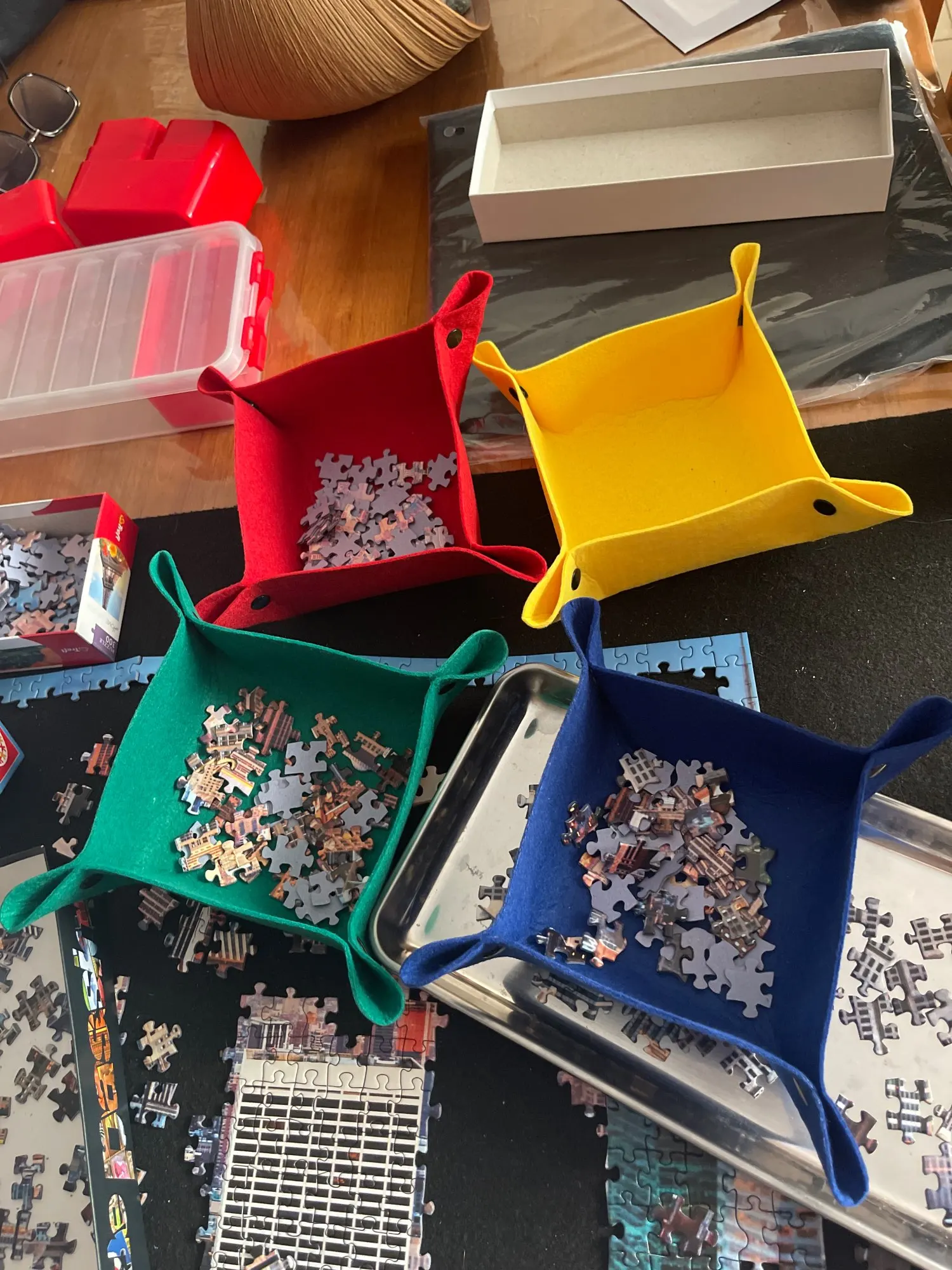 Найти это не совсем коврик для пазлов. Это просто кусок войлока. Оставайтесь кусочками пазлов, не волнуйтесь, если вы закрутите его