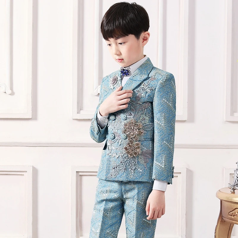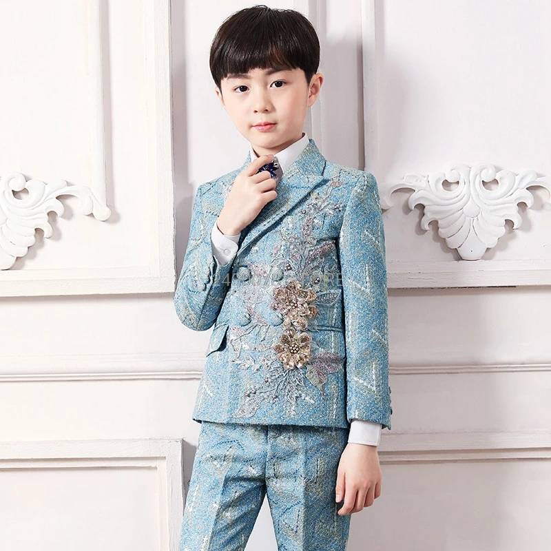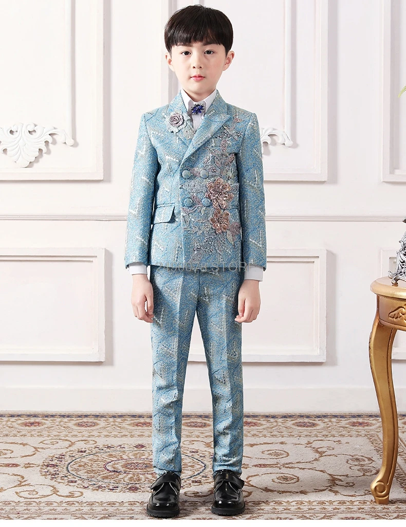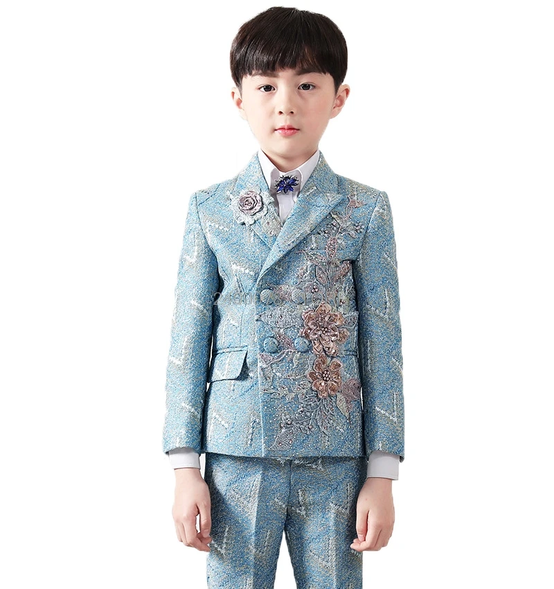 Официальное Платье с цветочной вышивкой Prince, роскошный свадебный костюм для мальчиков из 3 предметов, детский костюм для выступления на пианино