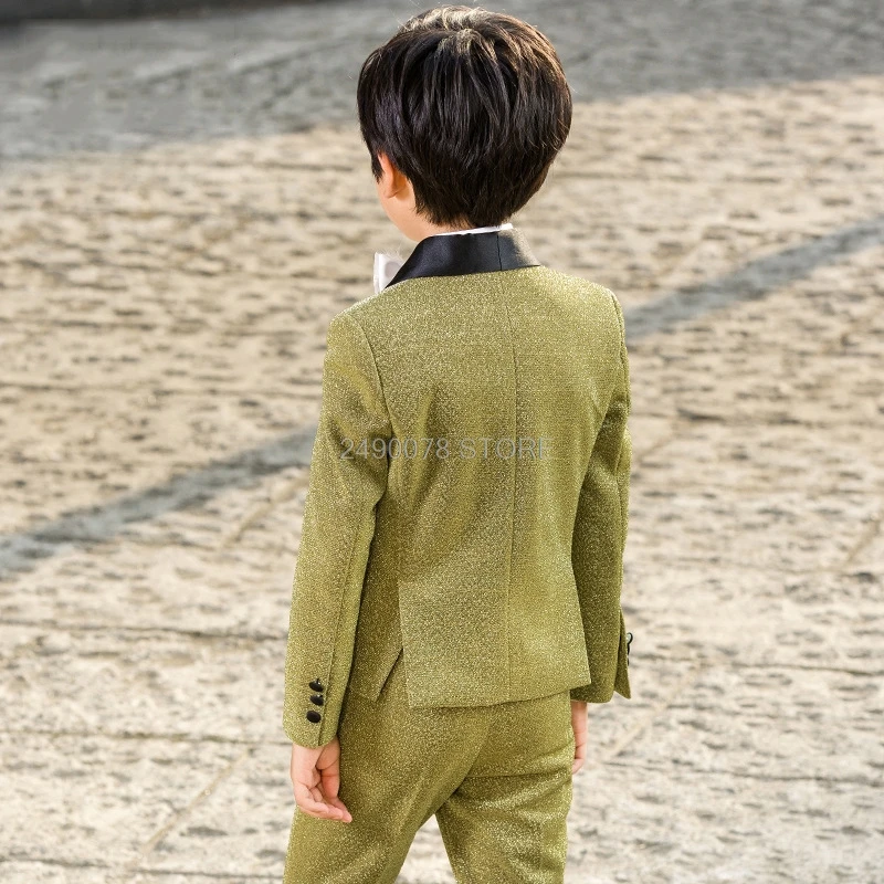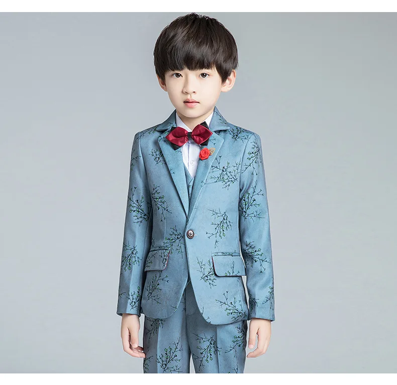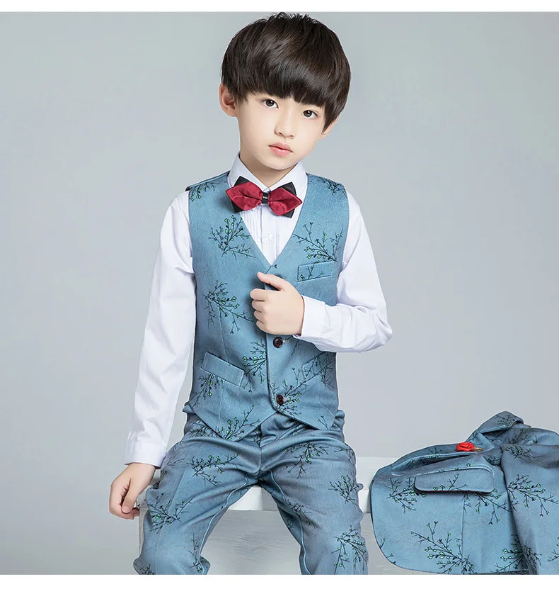 Торжественное платье, 3 шт., для мальчиков, для сценического шоу, с цветами, свадебный костюм, пиджак, жилет, брюки