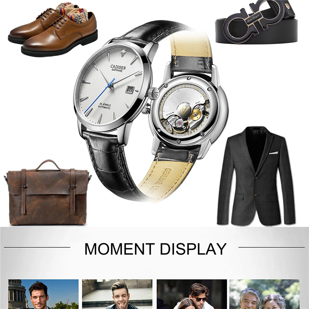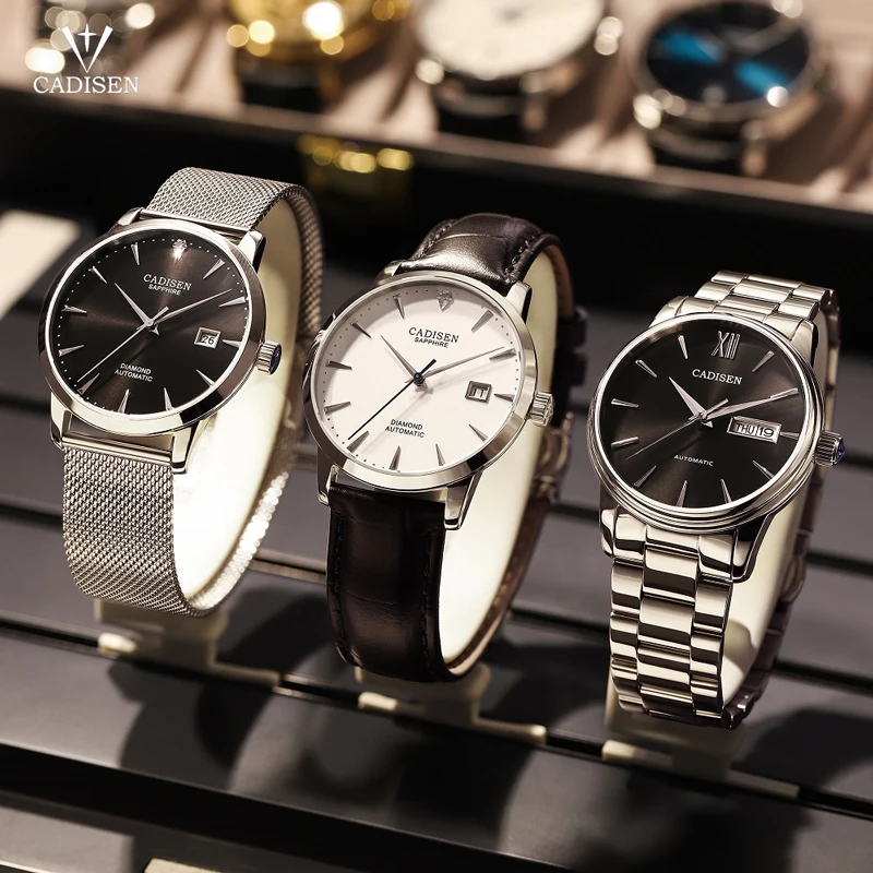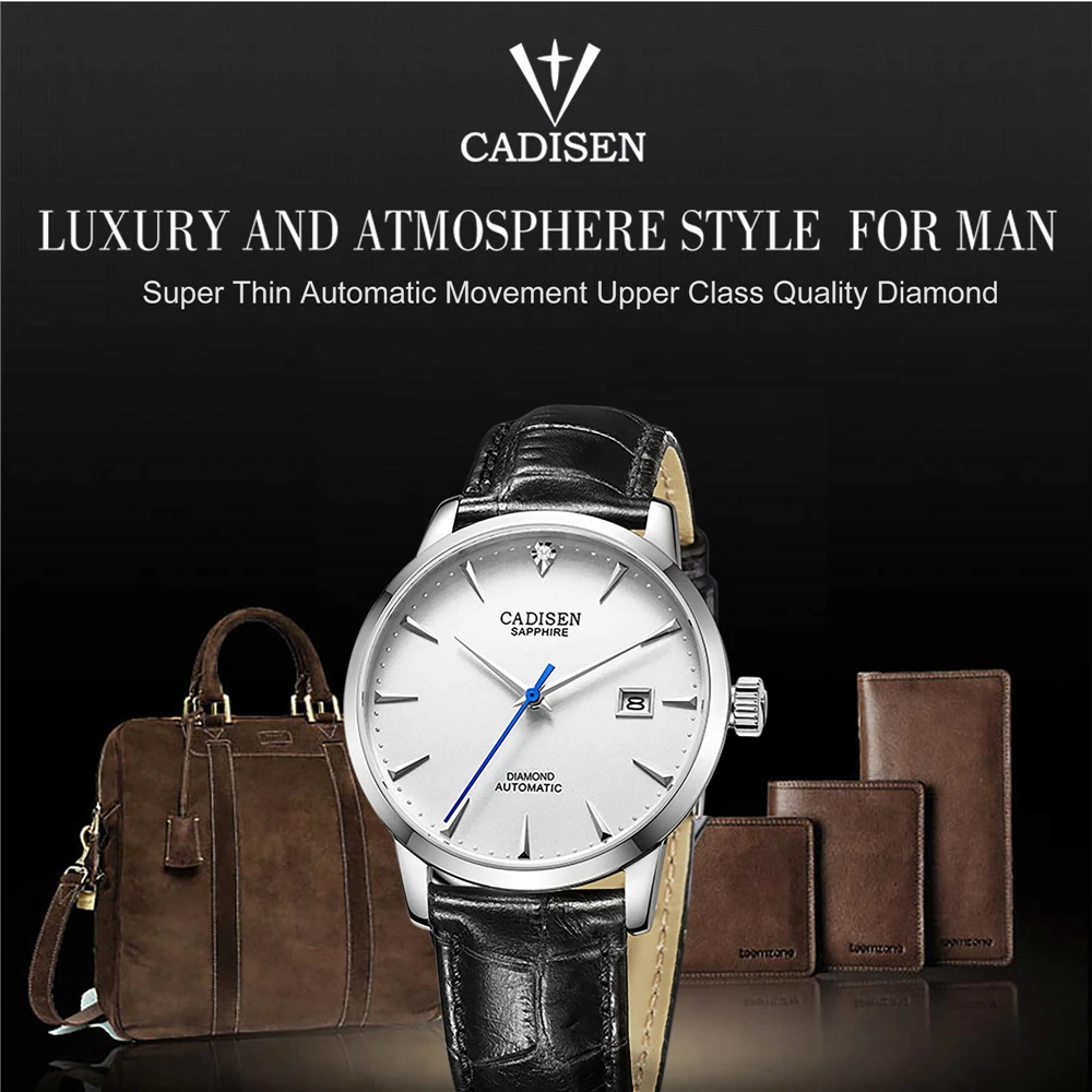 Часы наручные CADISEN Мужские механические, брендовые Роскошные деловые автоматические, s MIYOTA 9015 с натуральным бриллиантом