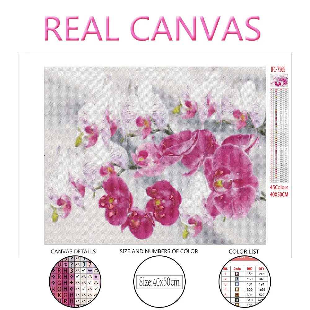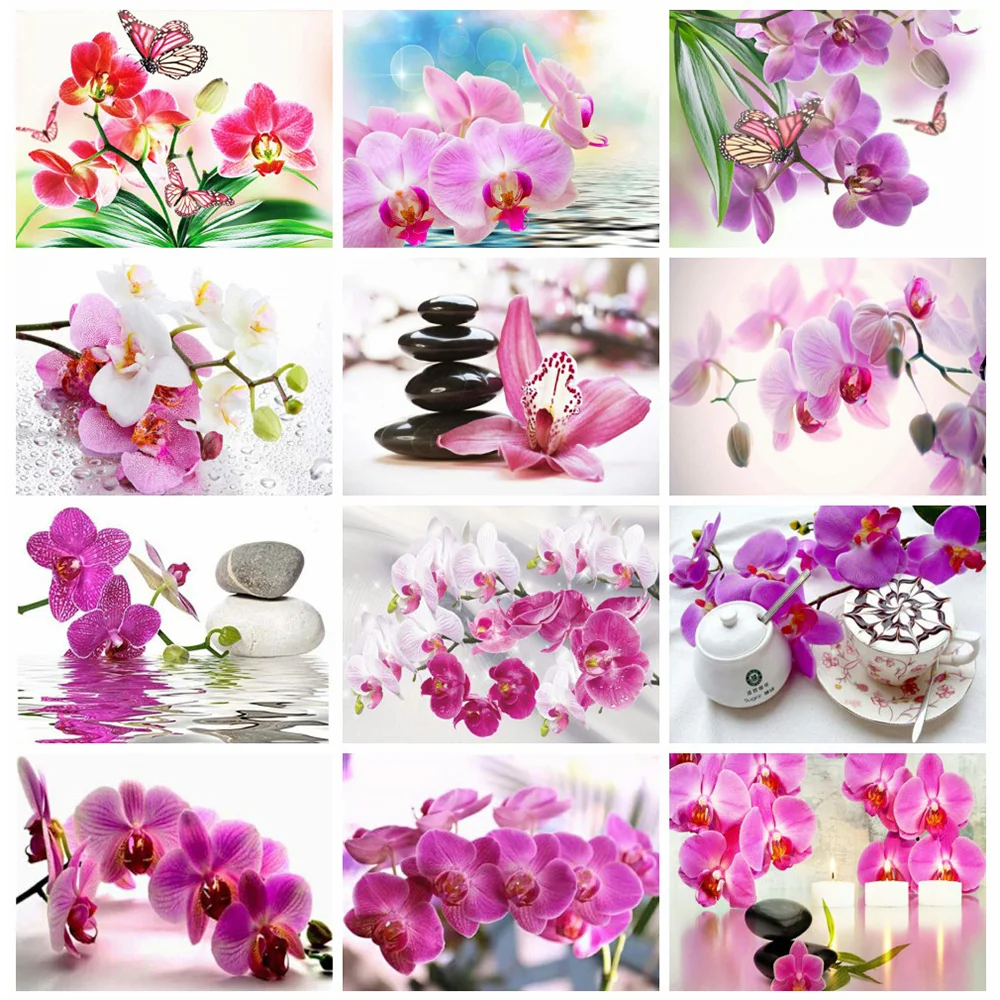 HUACAN 5d алмазная вышивка цветы картины на стену мозаика орхидея декоративные наклейки на стену