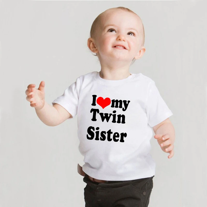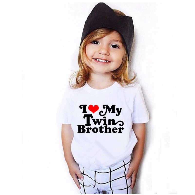 Детские футболки с надписью I Love My Twin Sister and Brother, модные футболки для маленьких мальчиков и девочек, футболки для братьев и сестер, топы, Повседневная летняя детская одежда