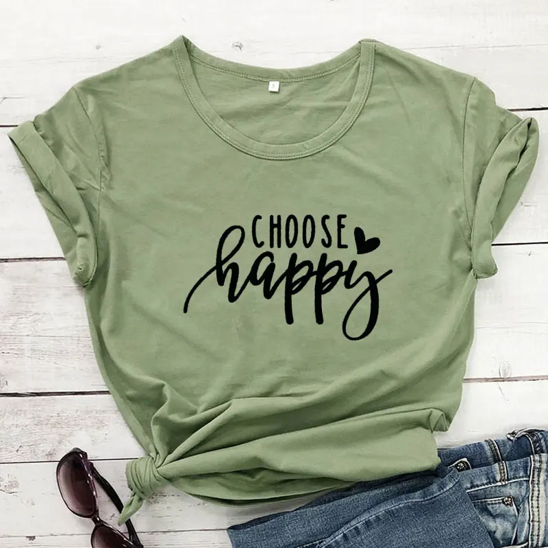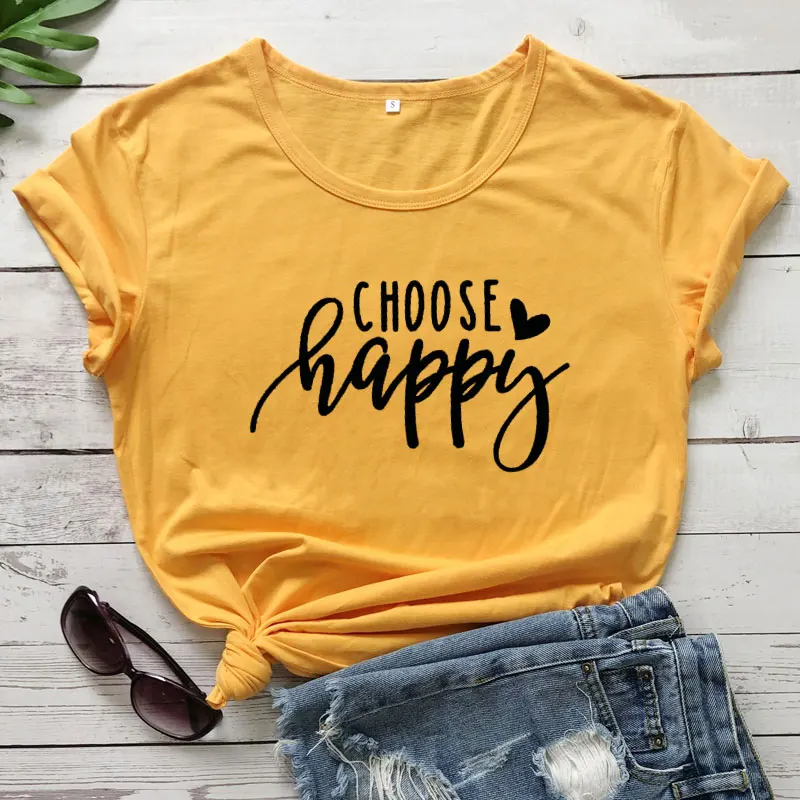 Футболка с надписью Choose Happy, Милая женская рубашка с вдохновляющими мотивами, повседневный летний топ с коротким рукавом и графическим принтом позитивности, женская рубашка