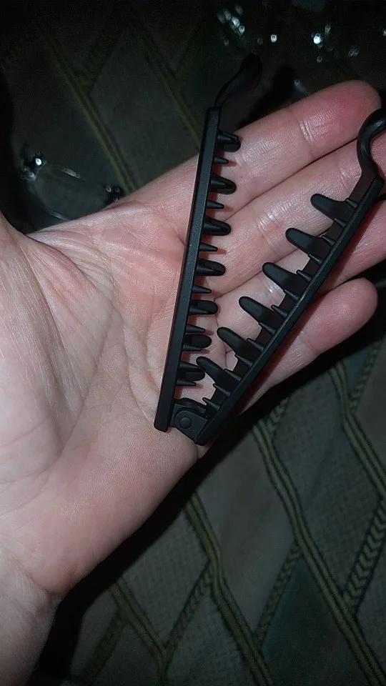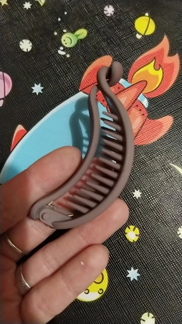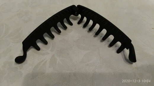 Заколка чёрная матовая, хорошо держит волосы средней густоты. присутствует запах то ли от пластика, то ли от напыления матового, как и на любых других заколках такого типа из Али, со временем должен выветрится. с одной стороны крупные зубья, с другой стороны есть ещё маленькие зубья, поэтому волосы хорошо держит. с продавцом не общались. товар пришел до СПб за 17 дней