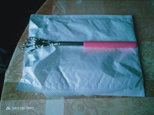 El producto llego el dia 10/03/21.... adjunto las fotos reales del producto... la mano es muy pequeña para una espalda grande. Para la proxima buscare con mano grande... El producto es para niños pienso... de todas maneras muy fácil de usar....