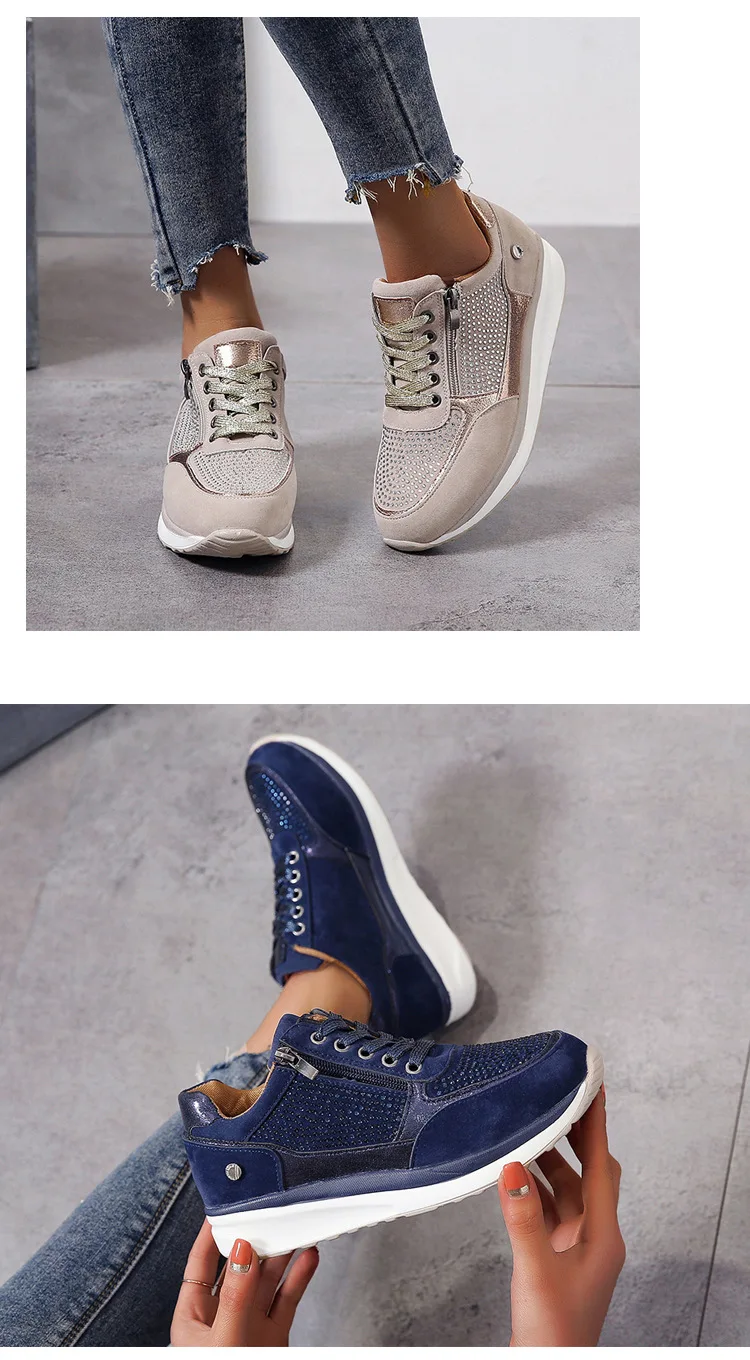Женские кроссовки стразы на молнии, блестящие кроссовки из искусств...