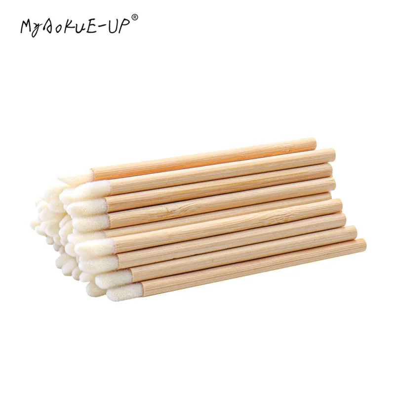 100 шт одноразовая кисточка для макияжа губ без ворса аппликатор блеск для губ палочка с бамбуковой ручкой для наращивания ресниц инструменты для макияжа
