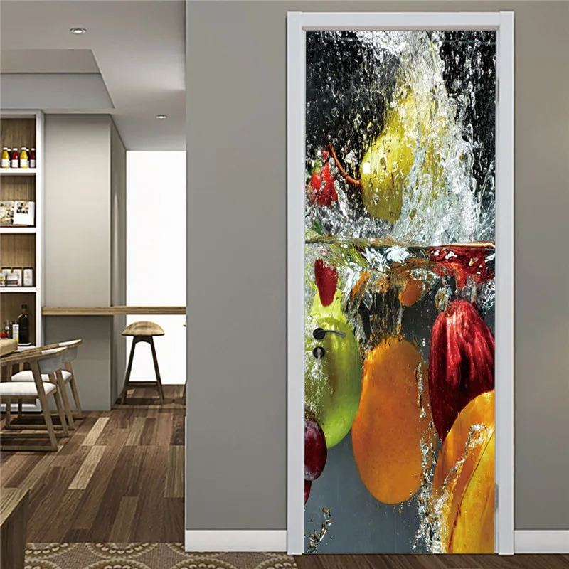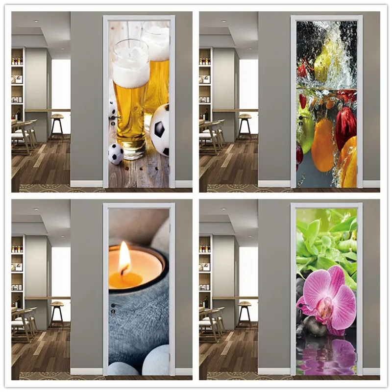 Водонепроницаемый плакат на дверь в виде пива, футбольного мяча, овощей, самоклеящиеся наклейки на входную дверь 3D, декоративные настенные наклейки для спальни 85x215