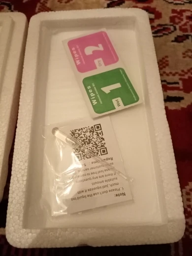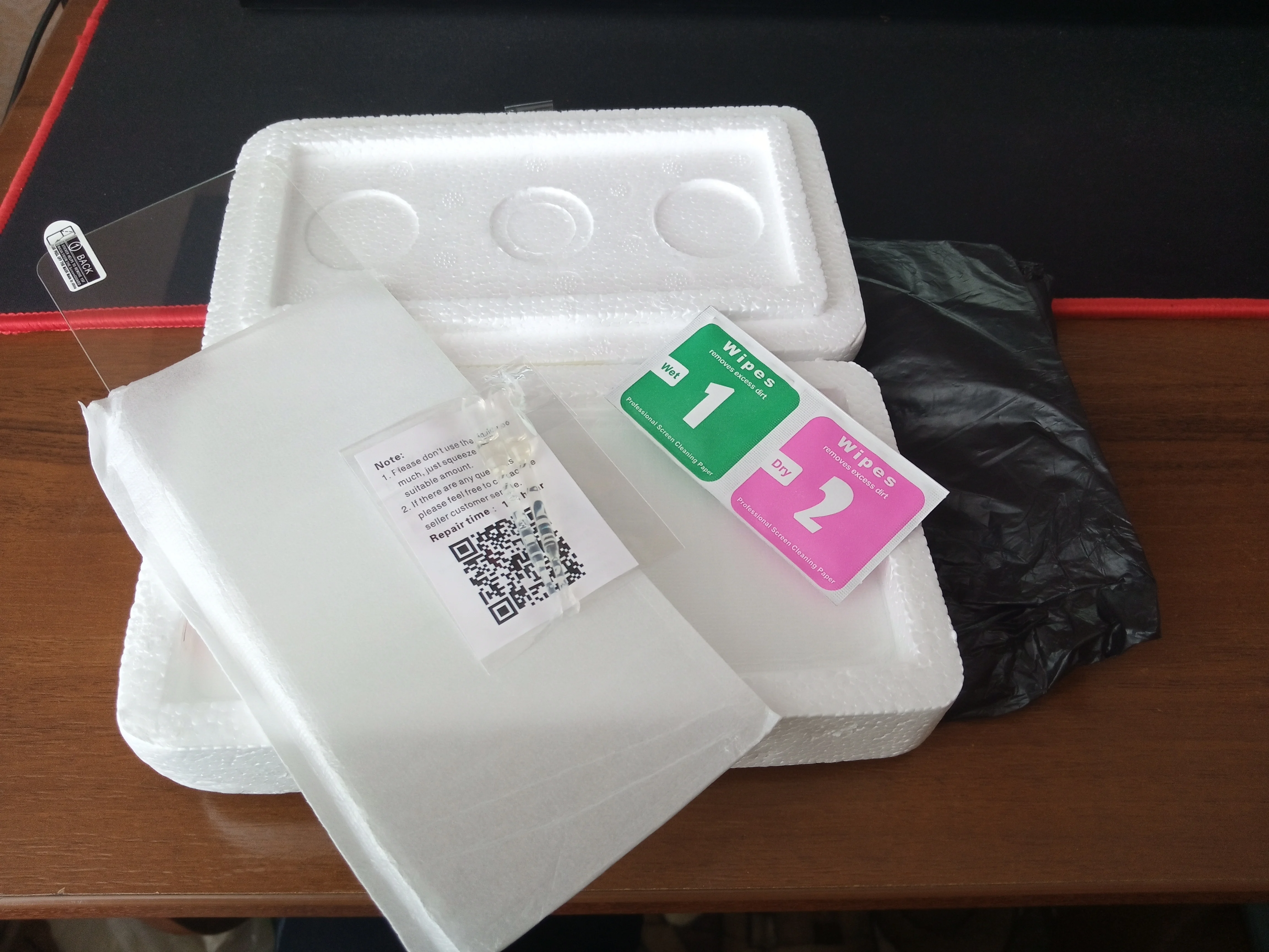 Продавец отправил товар на 2 день, до Свердловской области за 2 недели. В комплекте упаковка из 2х салфеток, стекло, жидкость для заполнения пустого пространства с края, если экран закруглённый или просто по краям стекло не приклеилось)